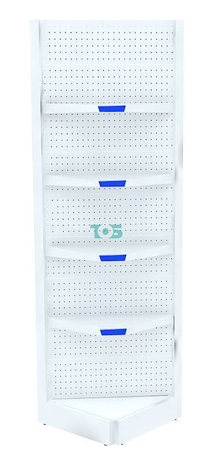 - задняя стенка стеллажа белая, перфорированная - можно использовать для крючков под вывеску товара;