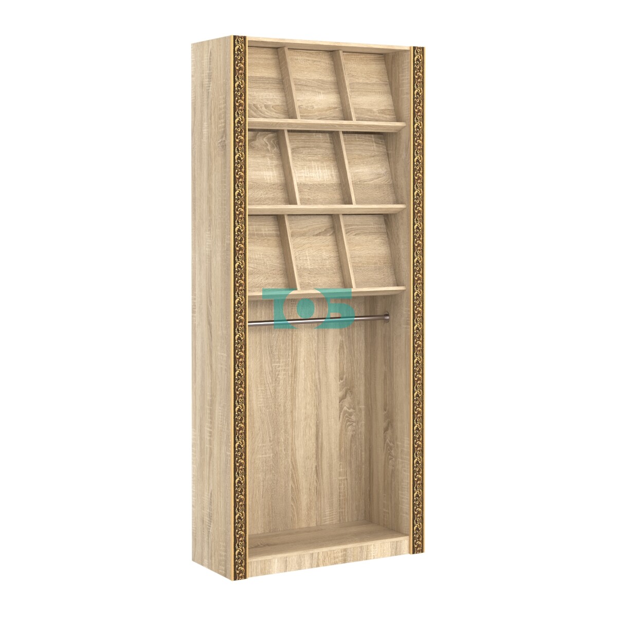 - правый и левый торец стеллажа украшен вертикальными цветными декоративными молдингами под золото;