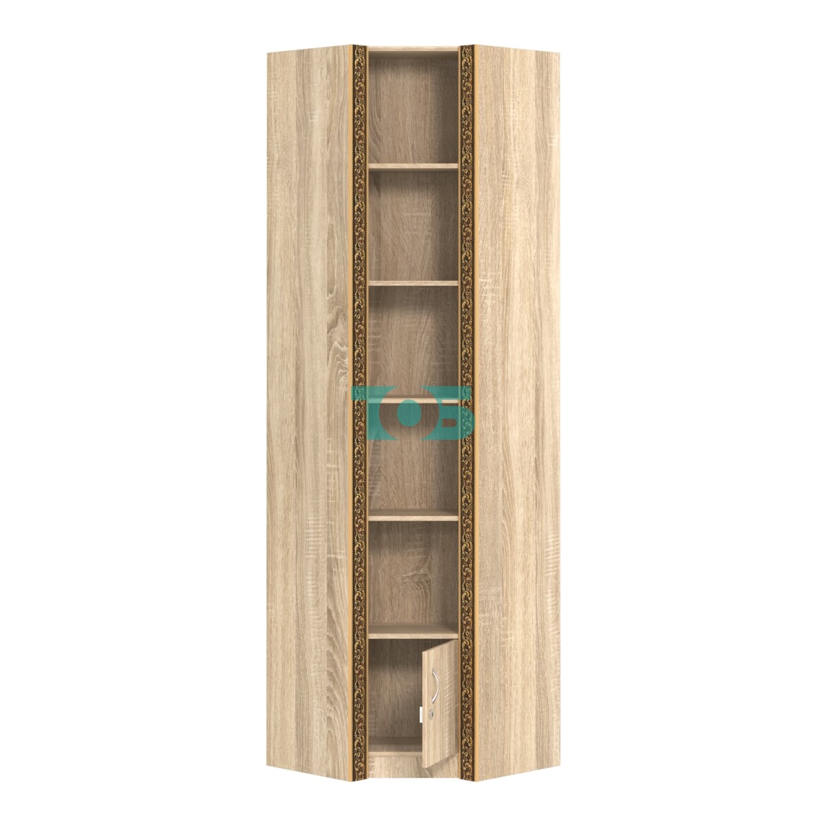 • Выставочный угловой стеллаж с накопителем и декором №СБА-5ВД-400, Дуб Золотистый