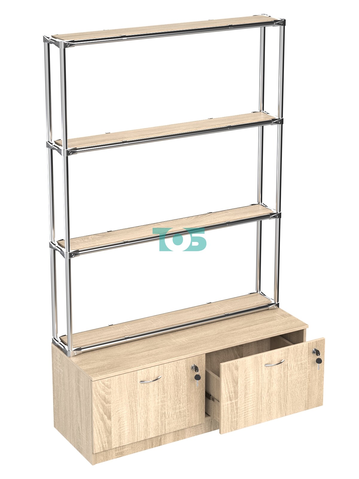 Хромированный стеллаж с полками ДСП 16мм №1 с тумбой Т-15 — это стильное и функциональное решение для организации пространства в вашем доме или офисе. Этот стеллаж отличается хромированным каркасом, полками из ДСП и удобной тумбой с двумя выдвижными ящиками и врезными замками, что делает его идеальным для хранения различных предметов.