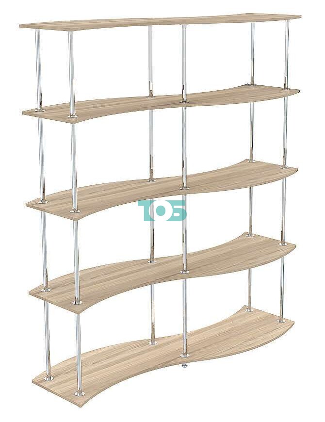 • Торговый обзорный хромированный стеллаж ВОЛНА №2-1, Орех