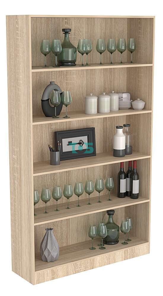 Низкий островной металлический торговый стеллаж со стеклянными полками и перфо- рированной задней стенкой