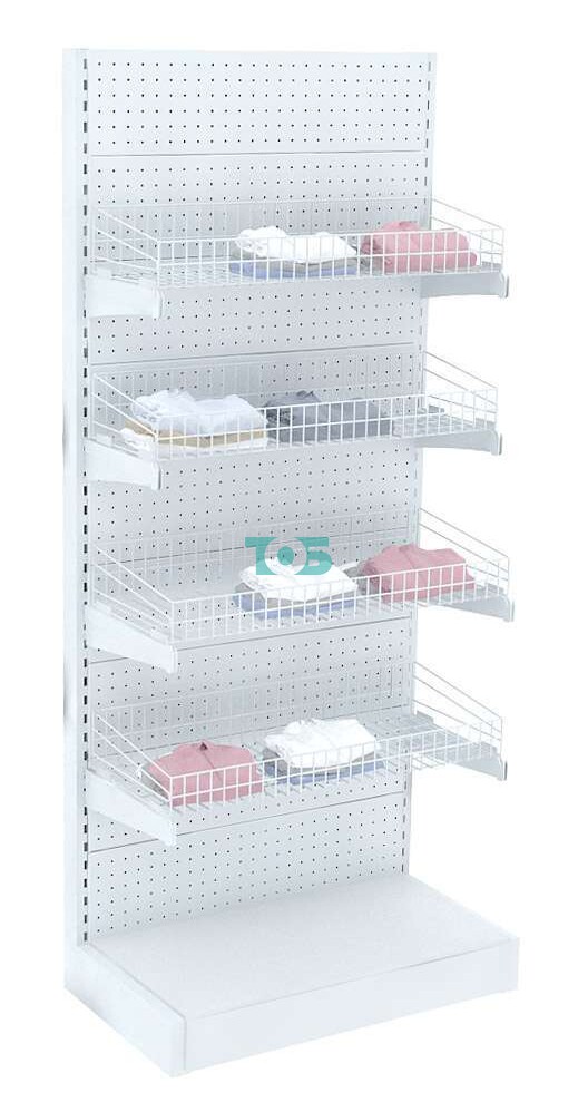 Стеллаж торговый металлический с сетчатой задней стенкой "ГРАФФ" №3-2.15-1-ОГР с полками, с ораничителями