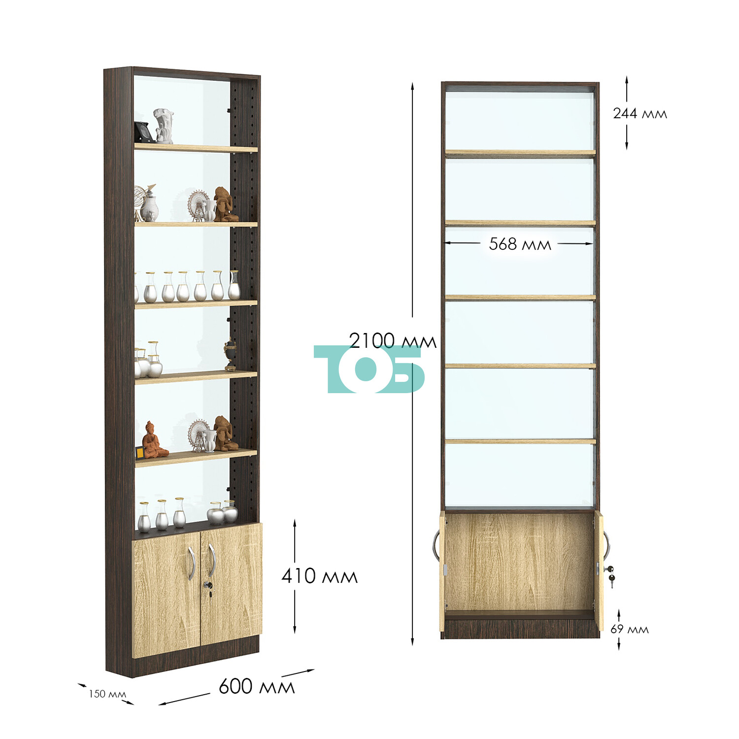 - нижний отсек закрыт распашными дверками с врезным замком;