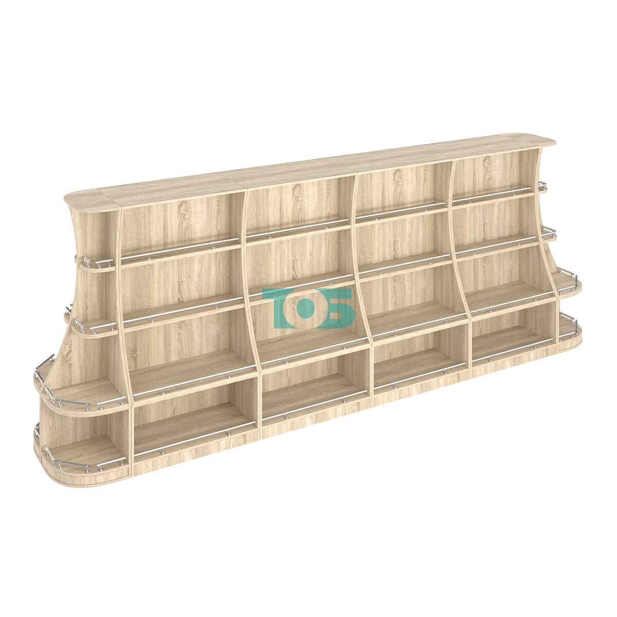 Островной низкий длинный стеллаж для продажи алкоголя серии ГАРАНТ №4