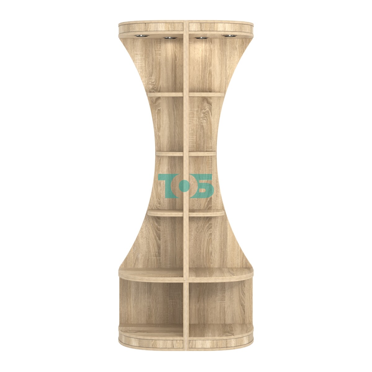 Отличия модели островного высокого стеллажа с полукруглыми полками для продажи косметики серии COSMETIC - БУТЫЛОЧКА:
