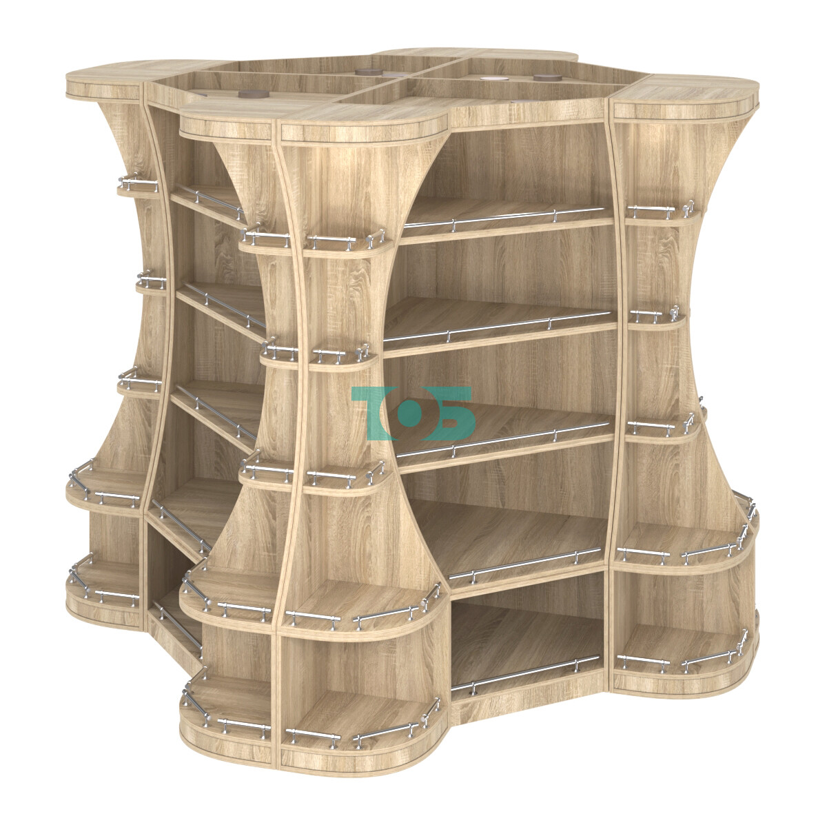 Модульность: включает двенадцать отдельных модулей — четыре угловых стеллажа с подсветкой и восемь стеллажей-секторов серии Гарант. Это обеспечивает гибкость в организации выкладки товара.