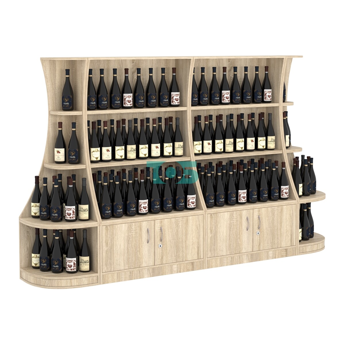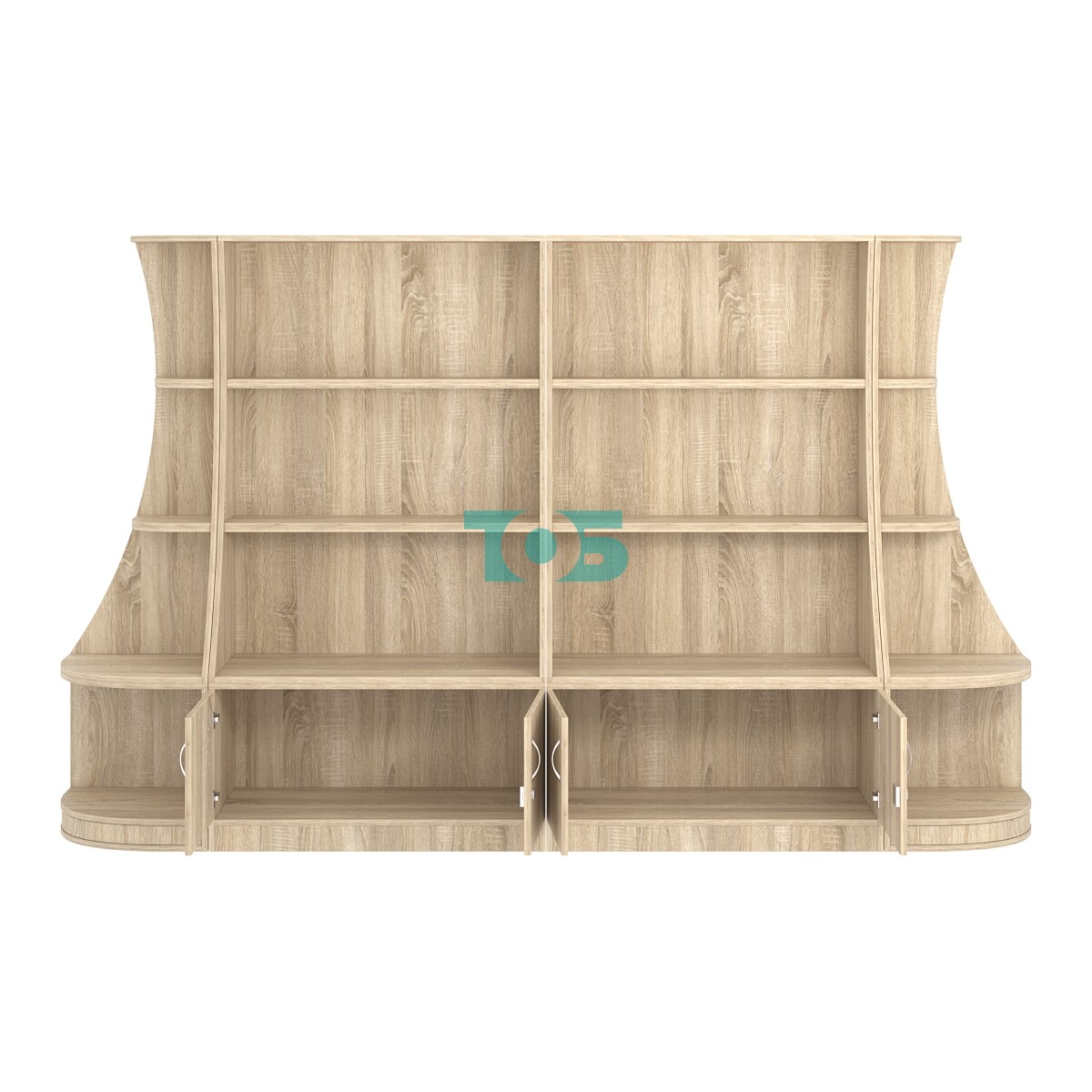- включает четыре отдельных модуля - два низких прямоугольных стеллажа и два стеллажа-сектора серии COSMETIC, образующих внешние углы;