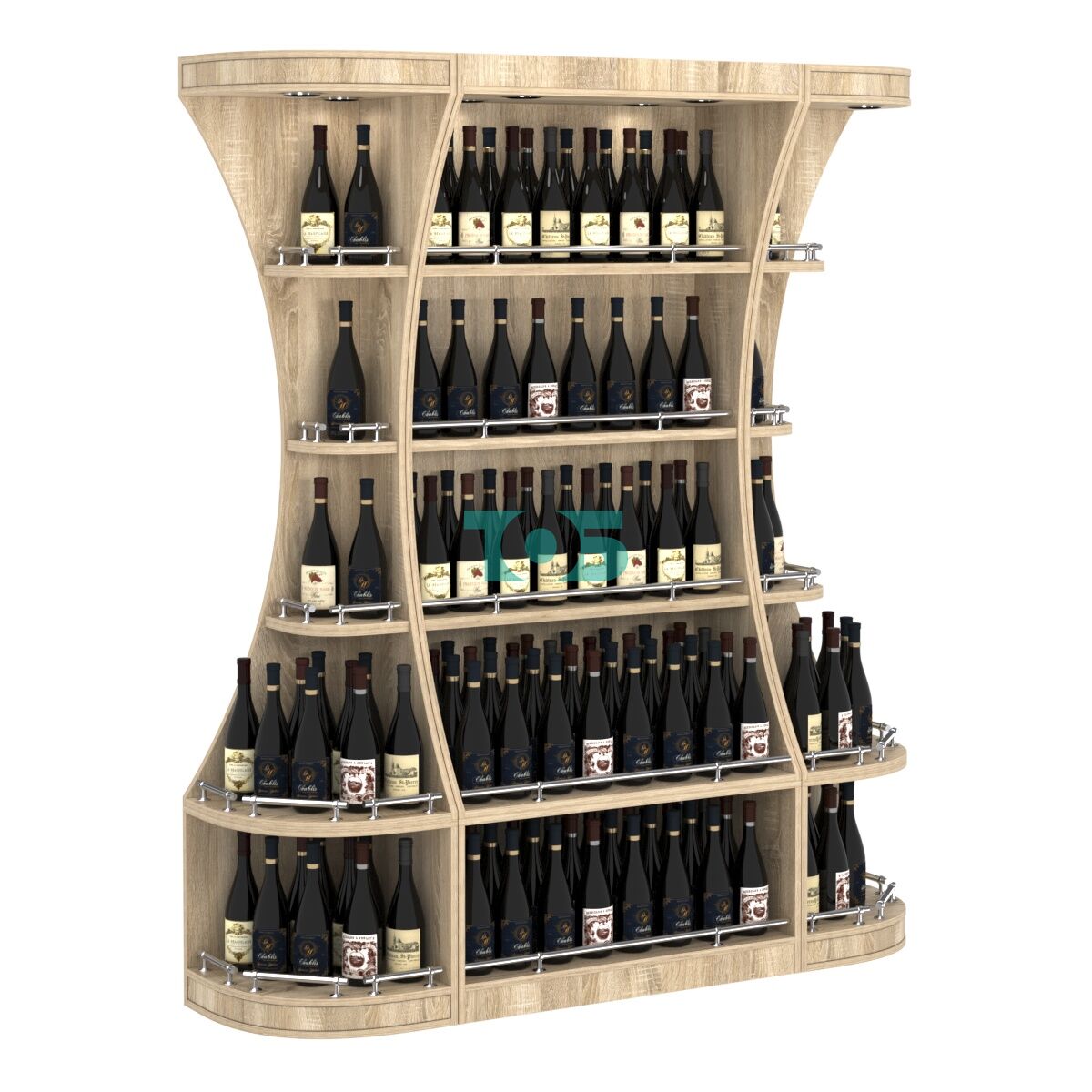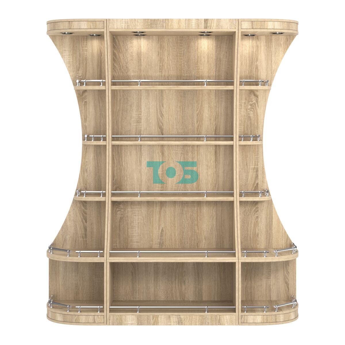 Пристенный высокий стеллаж для продажи алкоголя с закругленными углами серии ГАРАНТ №1