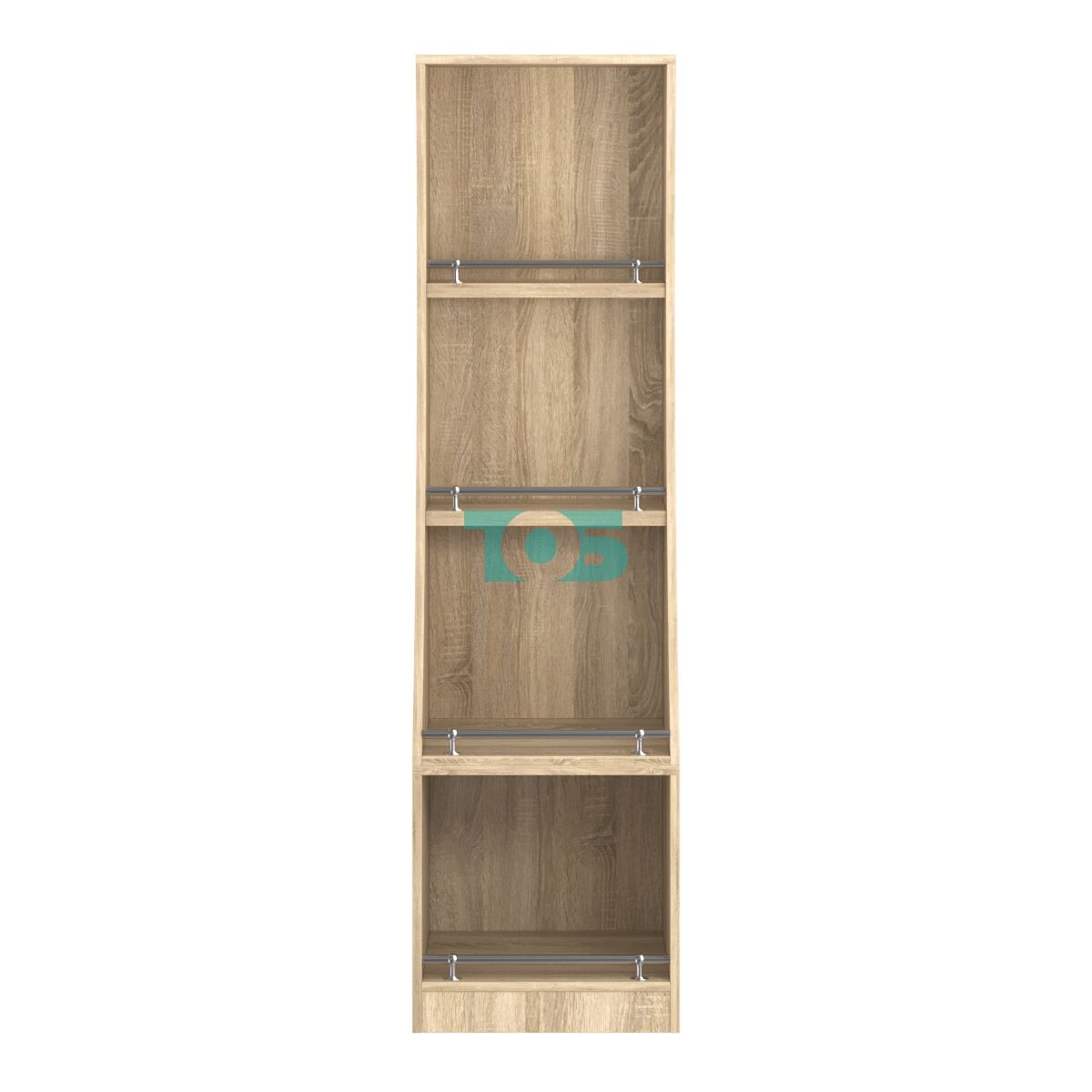 Полки: прямые, толщиной 25 мм, с пластиковой кромкой для защиты края. На каждой полке установлены хромированные ограничители, предотвращающие падение бутылок.