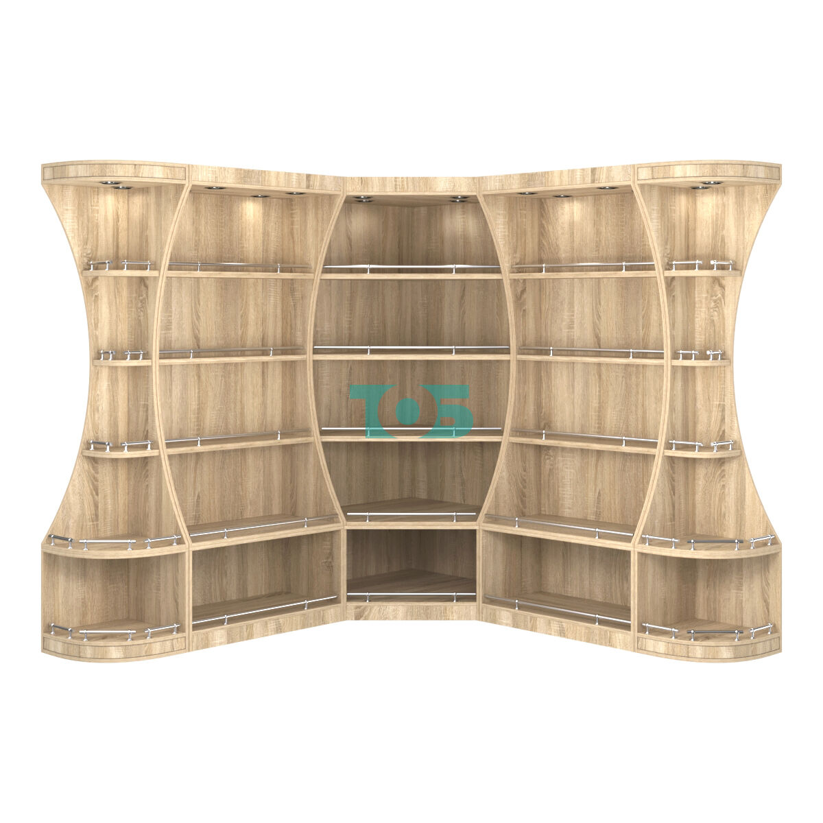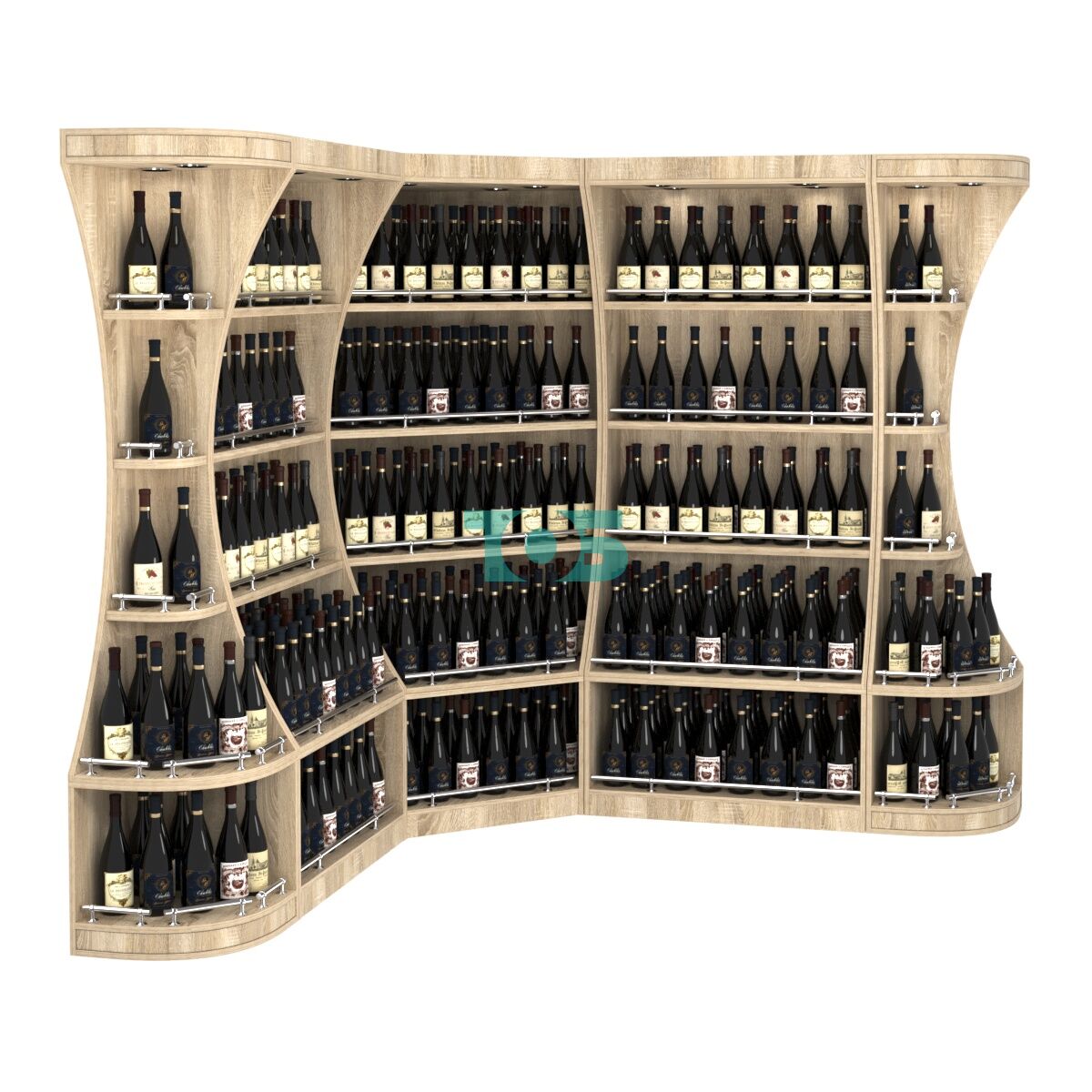 Угловой высокий большой стеллаж для продажи алкоголя с закругленными углами серии ГАРАНТ №2