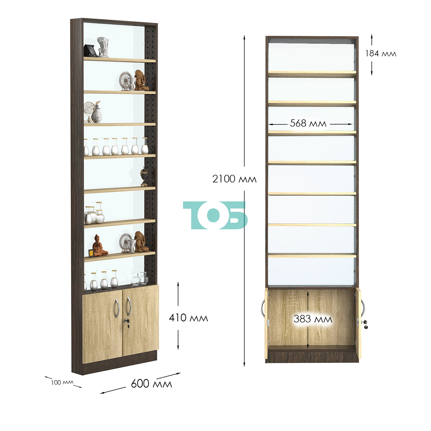 - нижний отсек закрыт распашными дверками с врезным замком;