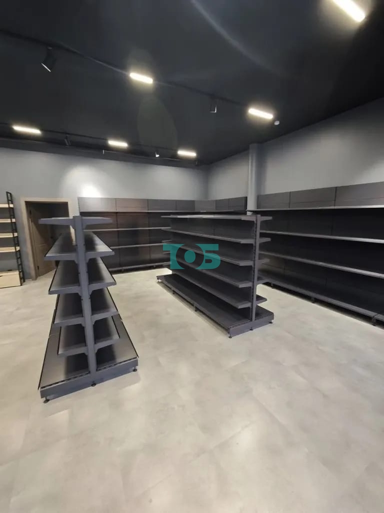Стеллаж торговый металлический островной "ГРАФФ" №5-1.65-1-ОГР с полками, с ограничителями