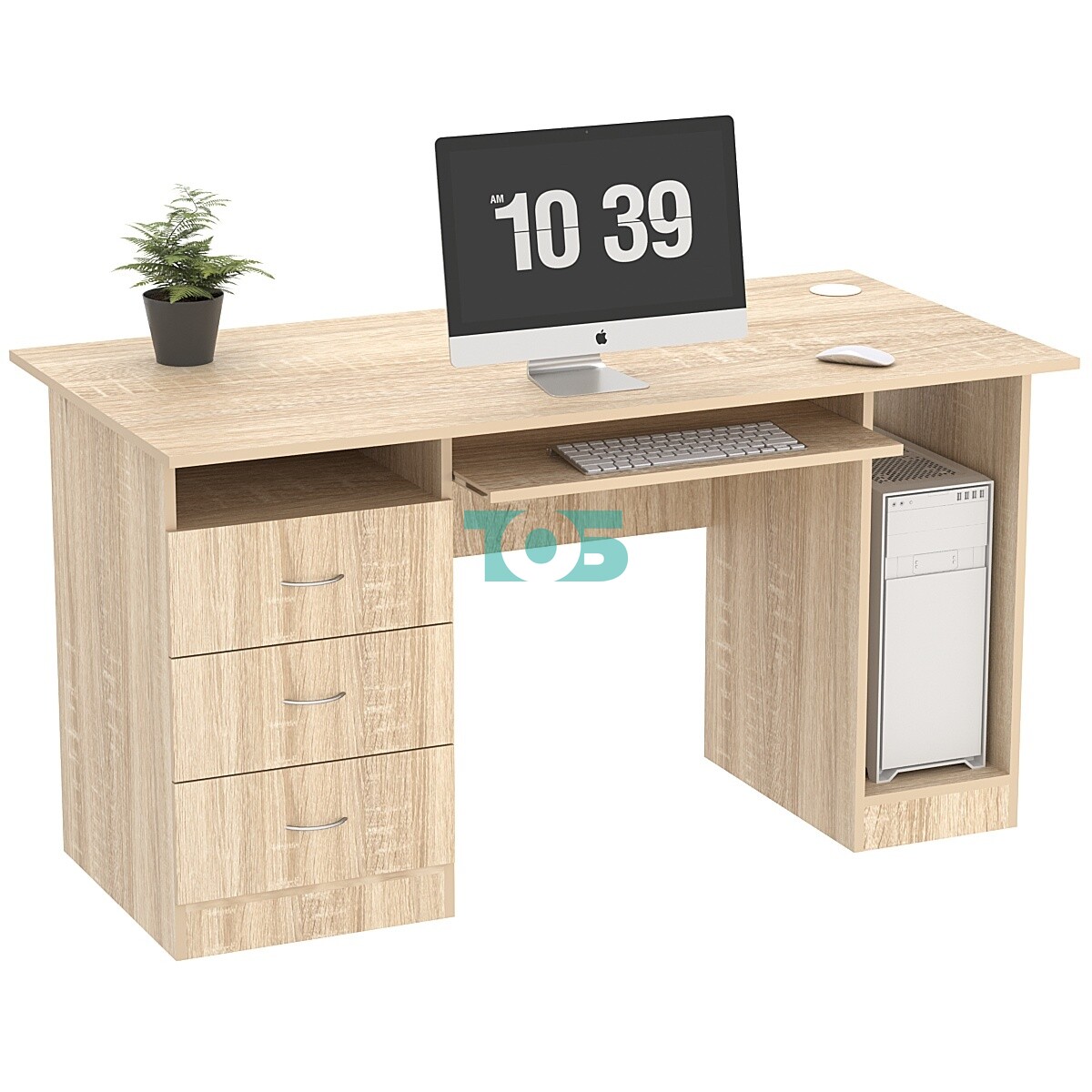 • Три выдвижных ящика слева: предоставляют дополнительное место для хранения канцелярских принадлежностей, документов и других важных вещей, что способствует поддержанию порядка и удобству в работе. • Индивидуальные размеры: возможность изготовления стола по размерам Заказчика позволяет адаптировать изделие под уникальные требования и особенности вашего рабочего пространства.