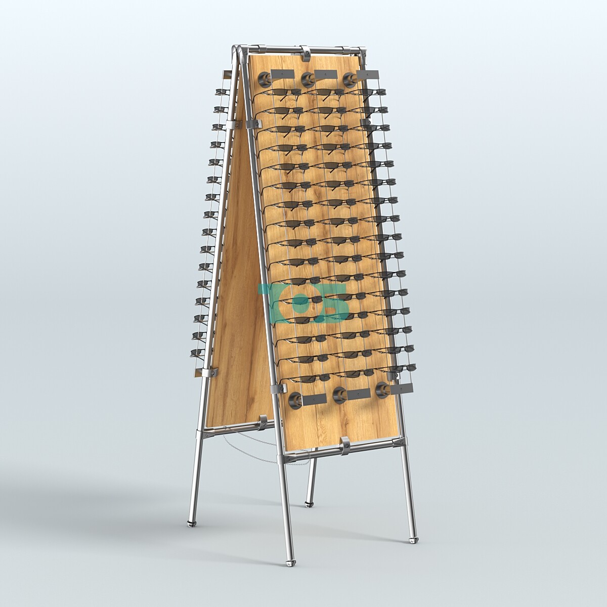Вместимость: стойка способна вместить до 96 пар очков, что делает её идеальным решением для средних и крупных торговых точек.