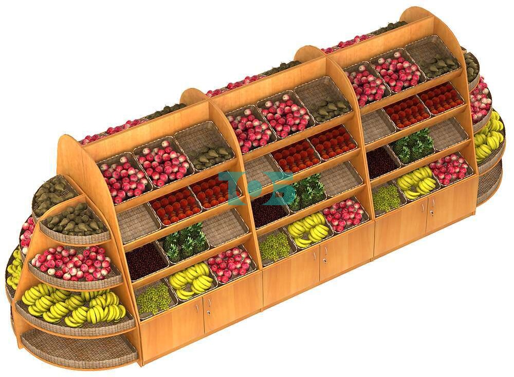 Островной торговый развал для овощей и фруктов №7 обеспечивает эффективное использование торгового пространства и удобство для покупателей, что делает его отличным выбором для магазинов и рынков.