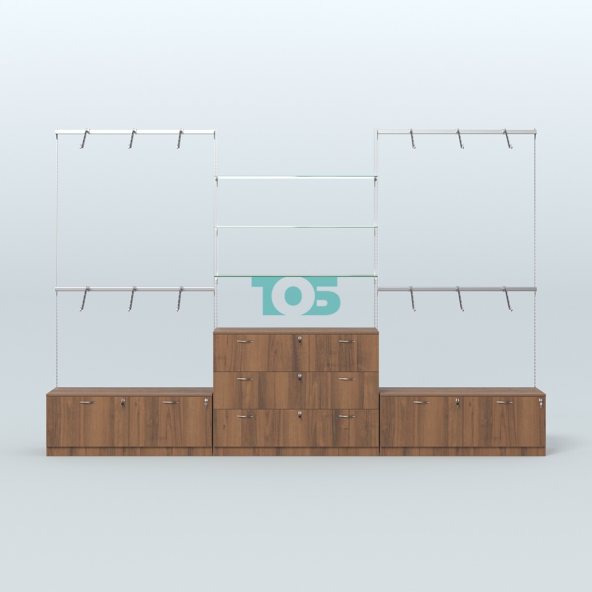 Торговая пристенная система серии METAL с комбинированными поручнями для одежды с задней стенкой шириной 1000 мм №3