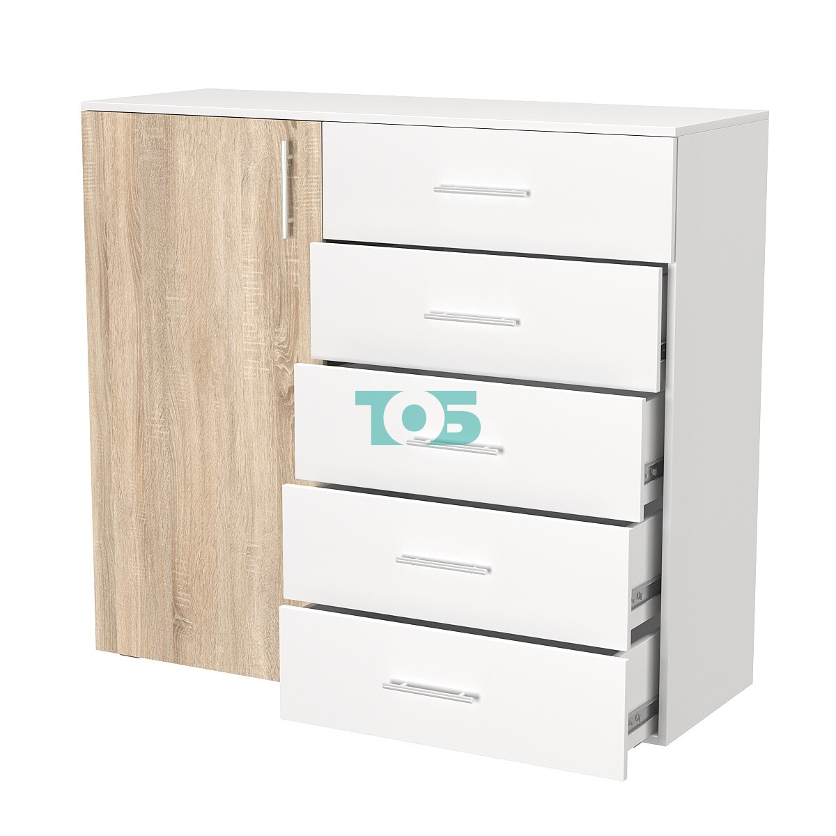 • Комод ВЕКТОР КВ-01, Белый + Дуб Сонома