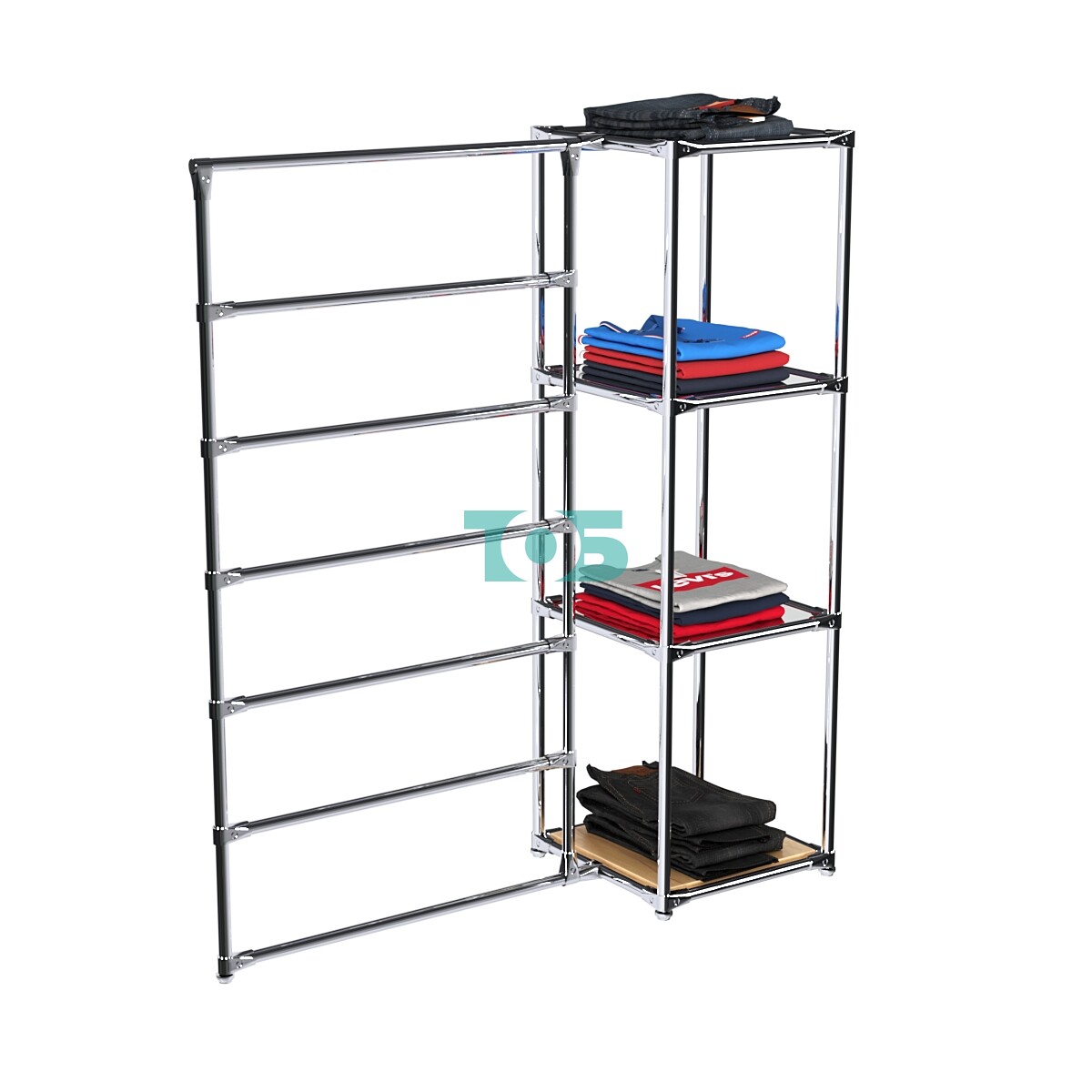 Регулируемые по высоте полки: Позволяют адаптировать вешало под различные виды товаров.