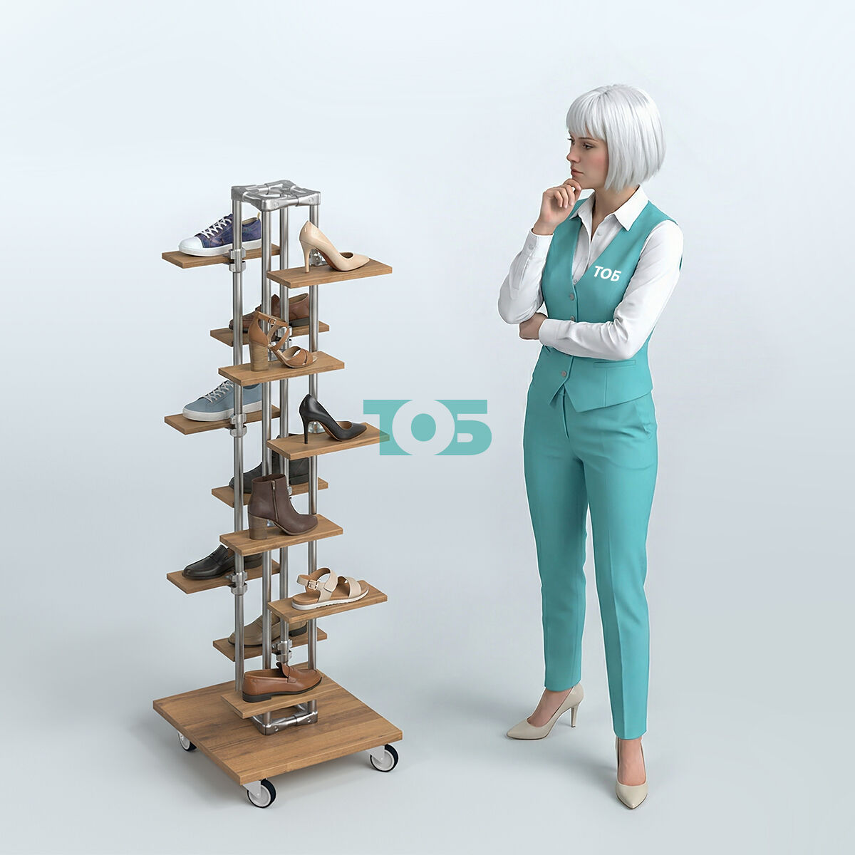 Стенд предназначен для экспонирования, демонстрации и продажи обуви, что делает его незаменимым элементом обувного магазина.