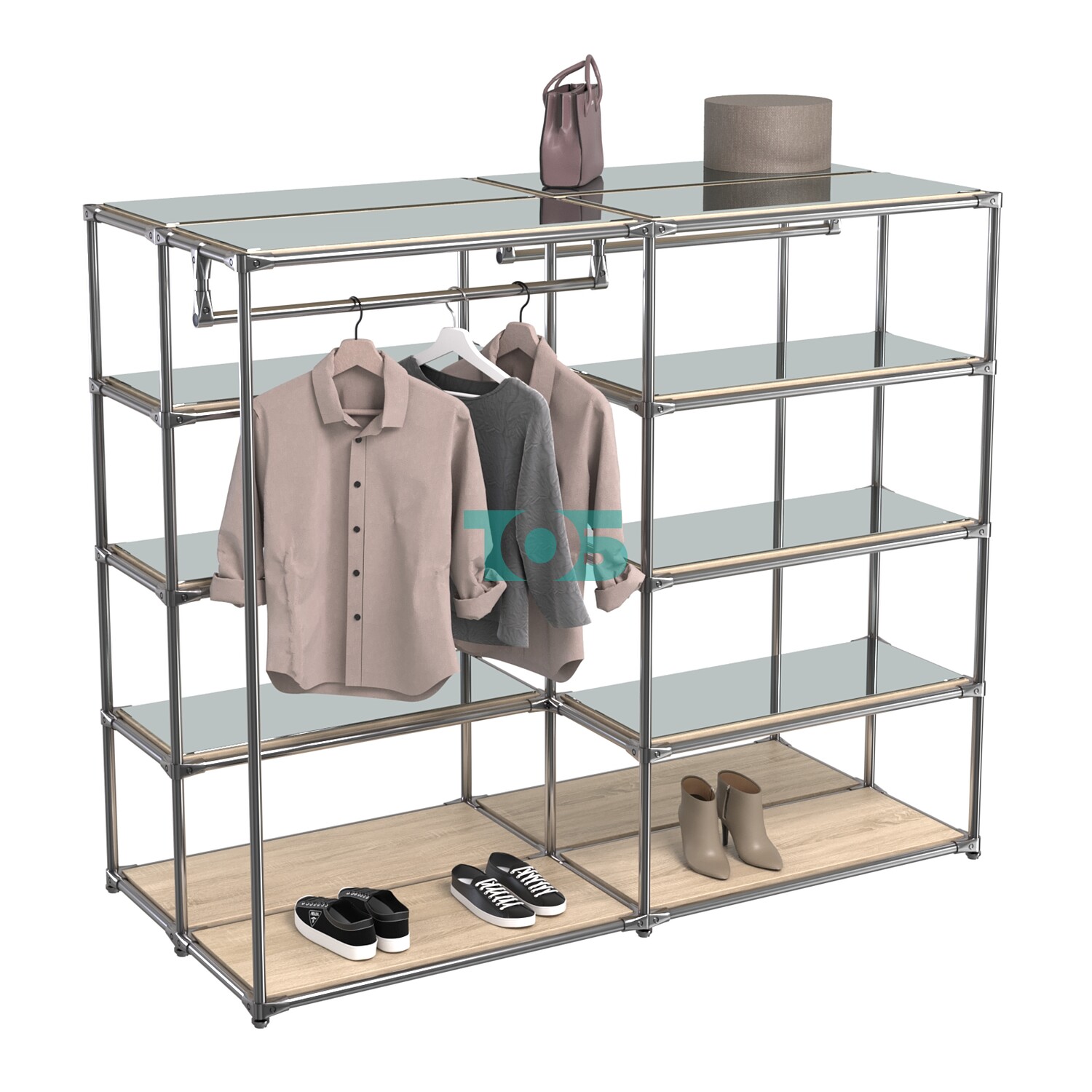 Два внутренних поручня: Позволяют демонстрировать одежду различными способами, предоставляя гибкость в выкладке товара.