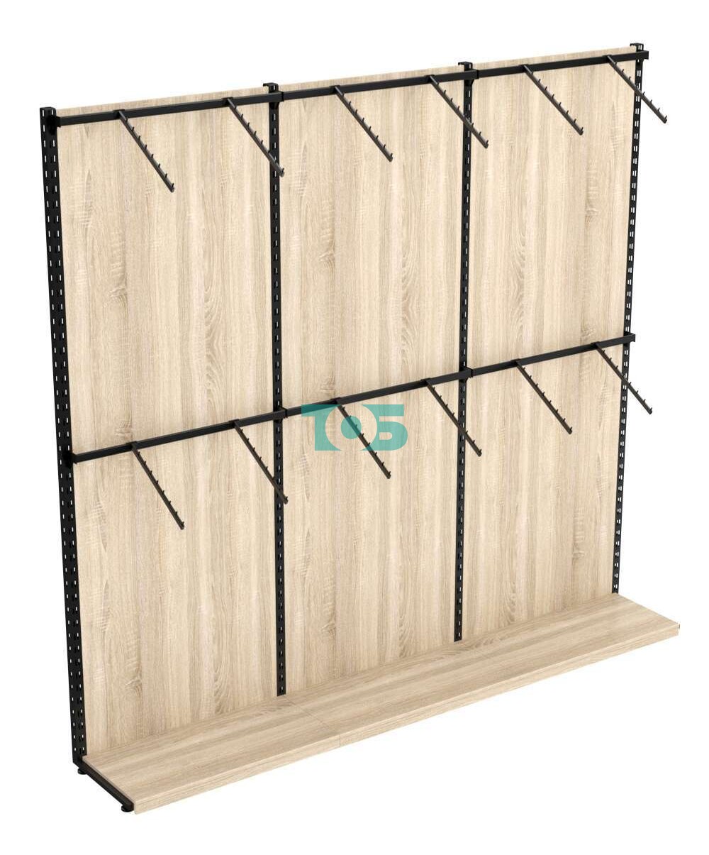 Пристенная система с пристенными поручнями для одежды ЛОФТ №2-ЗС 2700 мм — это стильное и функциональное решение для организации хранения и демонстрации одежды. Она сочетает в себе элементы дизайна в стиле лофт и практичность, что делает её отличным выбором для различных помещений.