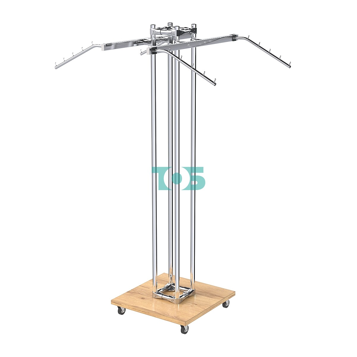 Подвижная платформа: Обеспечивает гибкость в размещении и перемещении вешала, что упрощает адаптацию под различные торговые зоны.