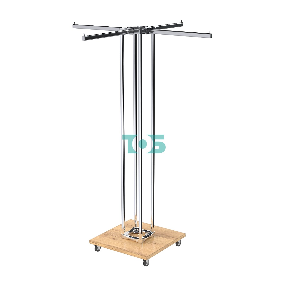 1. Четырехсторонняя конструкция: Позволяет эффективно использовать пространство, демонстрируя одежду с разных сторон, что улучшает обзор и доступность товара.