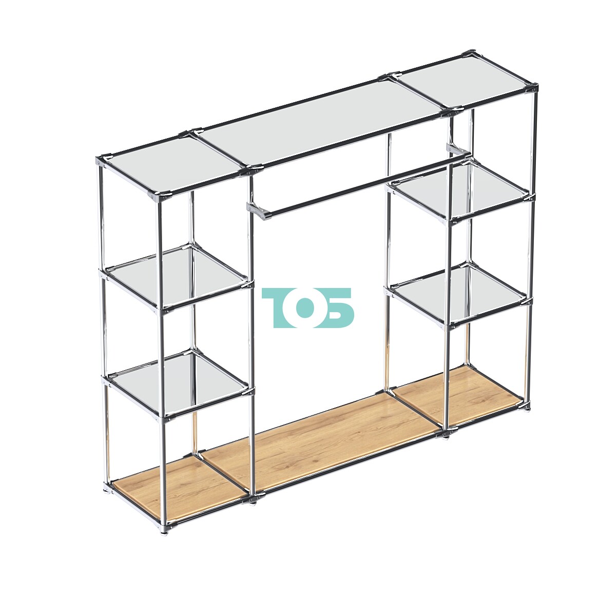 Хромированный стенд-вешало с усиленными поручнями и зеркальным торцом ZTD-11 №1-1 и полкой стекло 6 мм