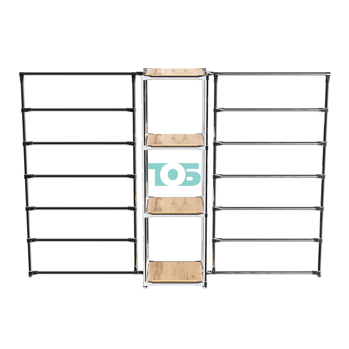 Регулируемые по высоте полки: Позволяют адаптировать вешало под различные размеры товаров, обеспечивая оптимальное использование пространства.