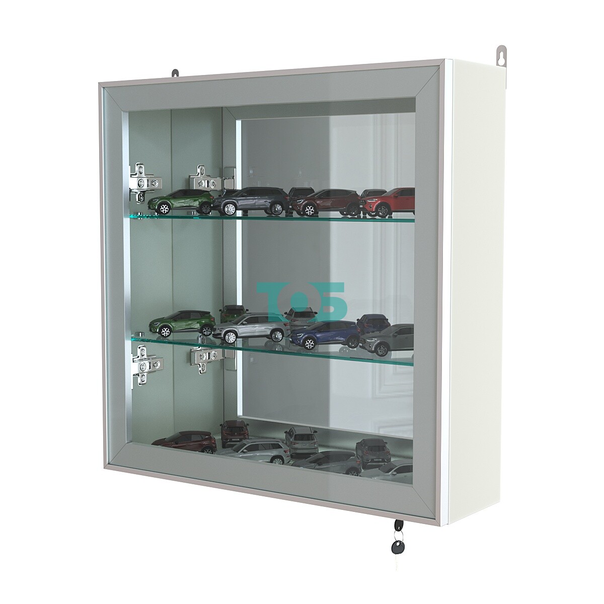 Прозрачные полки: две стеклянные полки обеспечивают максимальный обзор экспонатов со всех сторон, создавая эстетичный и привлекательный вид.