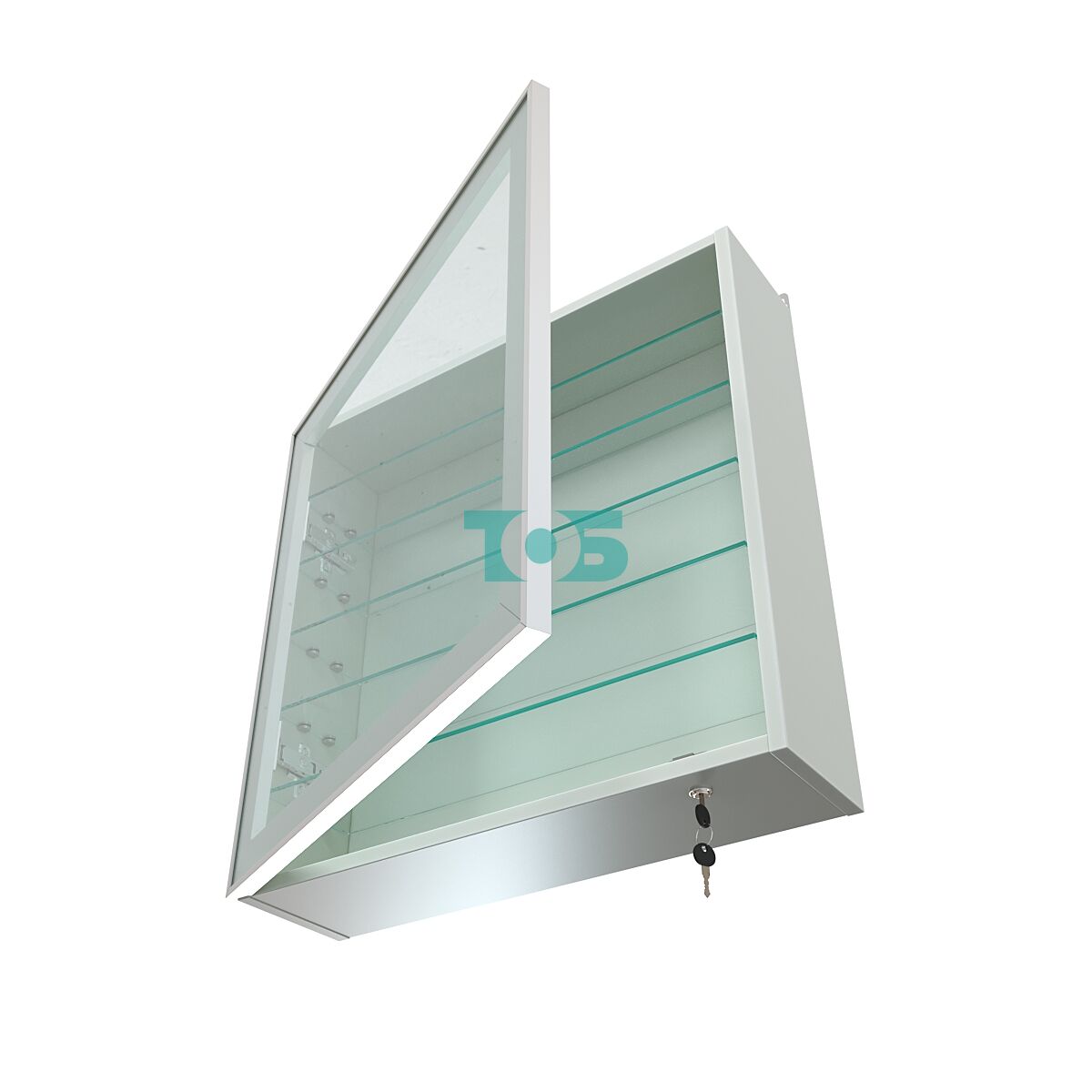 Защитный механизм: распашная стеклянная дверь оснащена надёжным замковым механизмом, гарантирующим безопасность содержимого витрины.