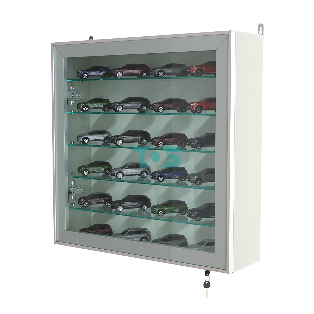 Система хранения: пять стеклянных полок позволяют разместить значительное количество экспонатов или товаров, обеспечивая удобный доступ и отличный обзор содержимого.
