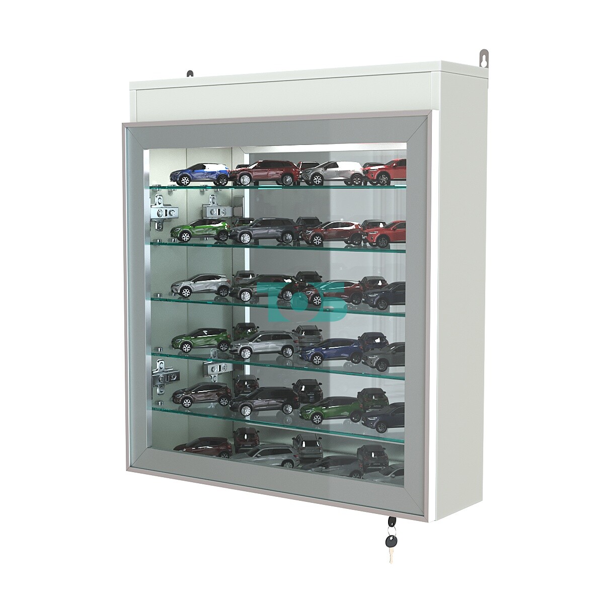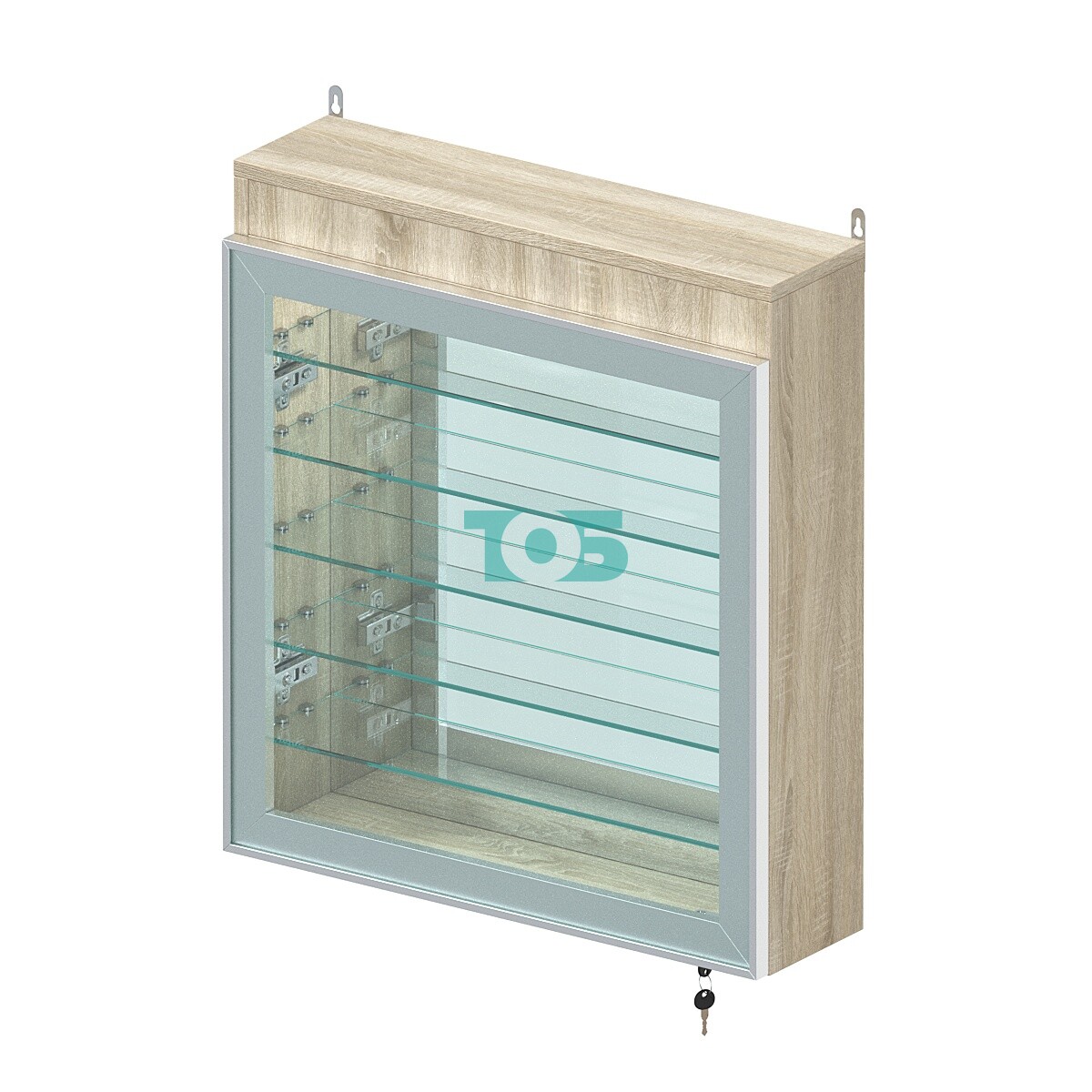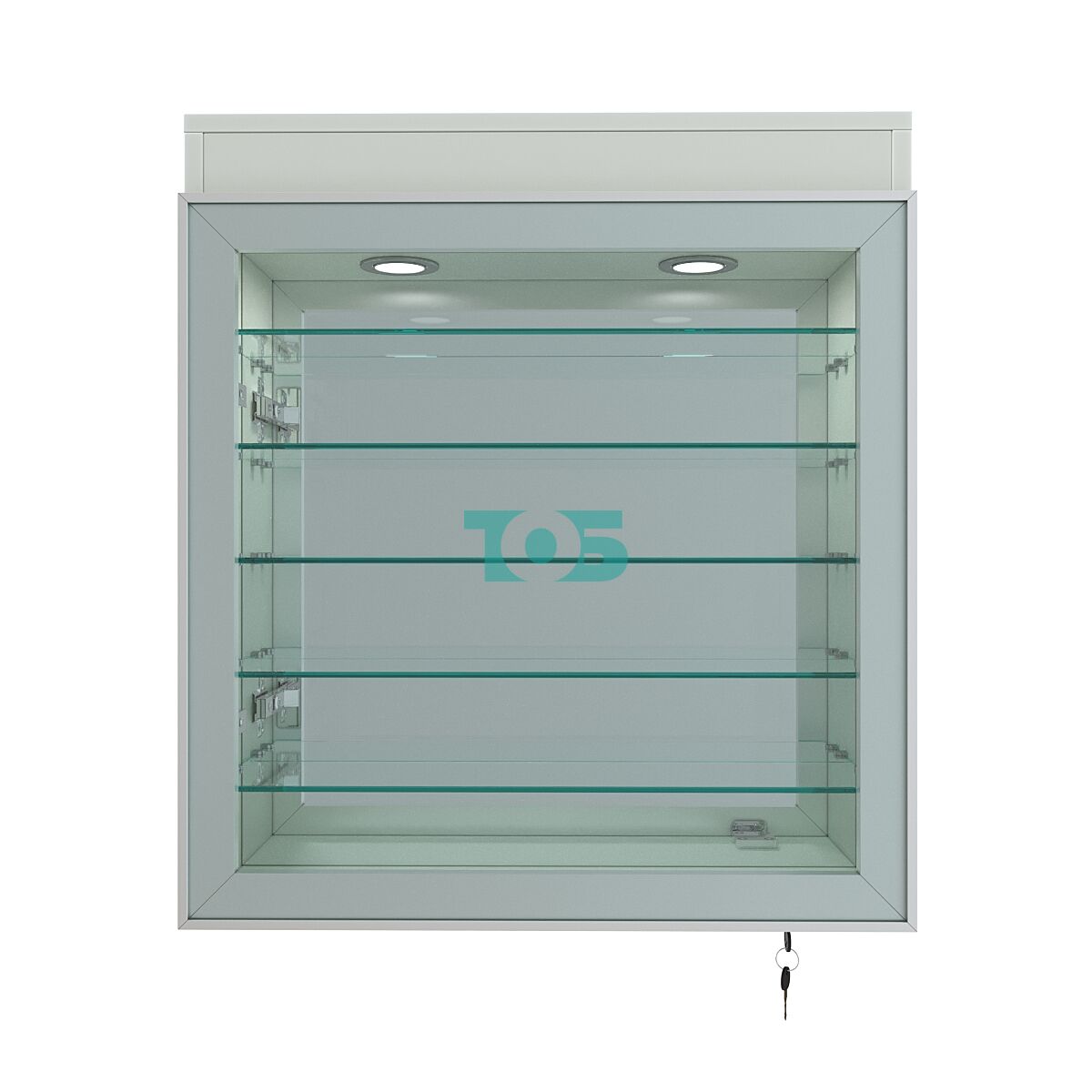 Дверной блок: витрина оборудована двумя распашными дверями из закалённого стекла в алюминиевом профиле, оснащёнными надёжным замковым механизмом для защиты содержимого.