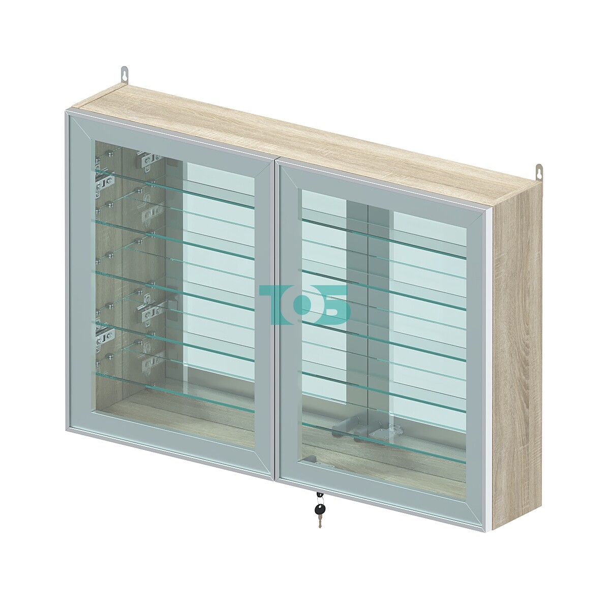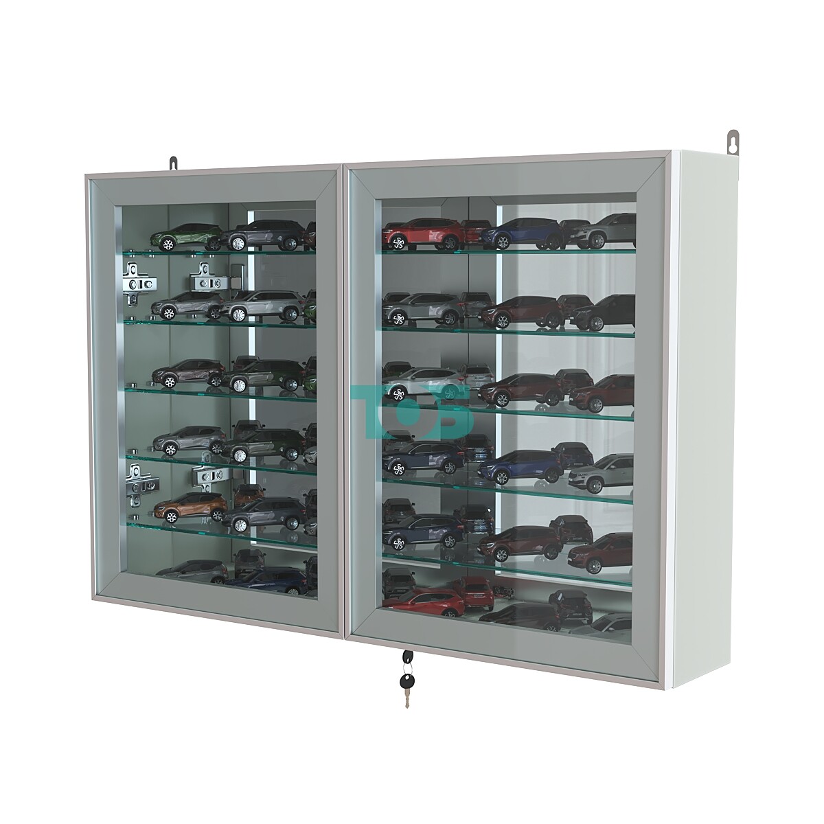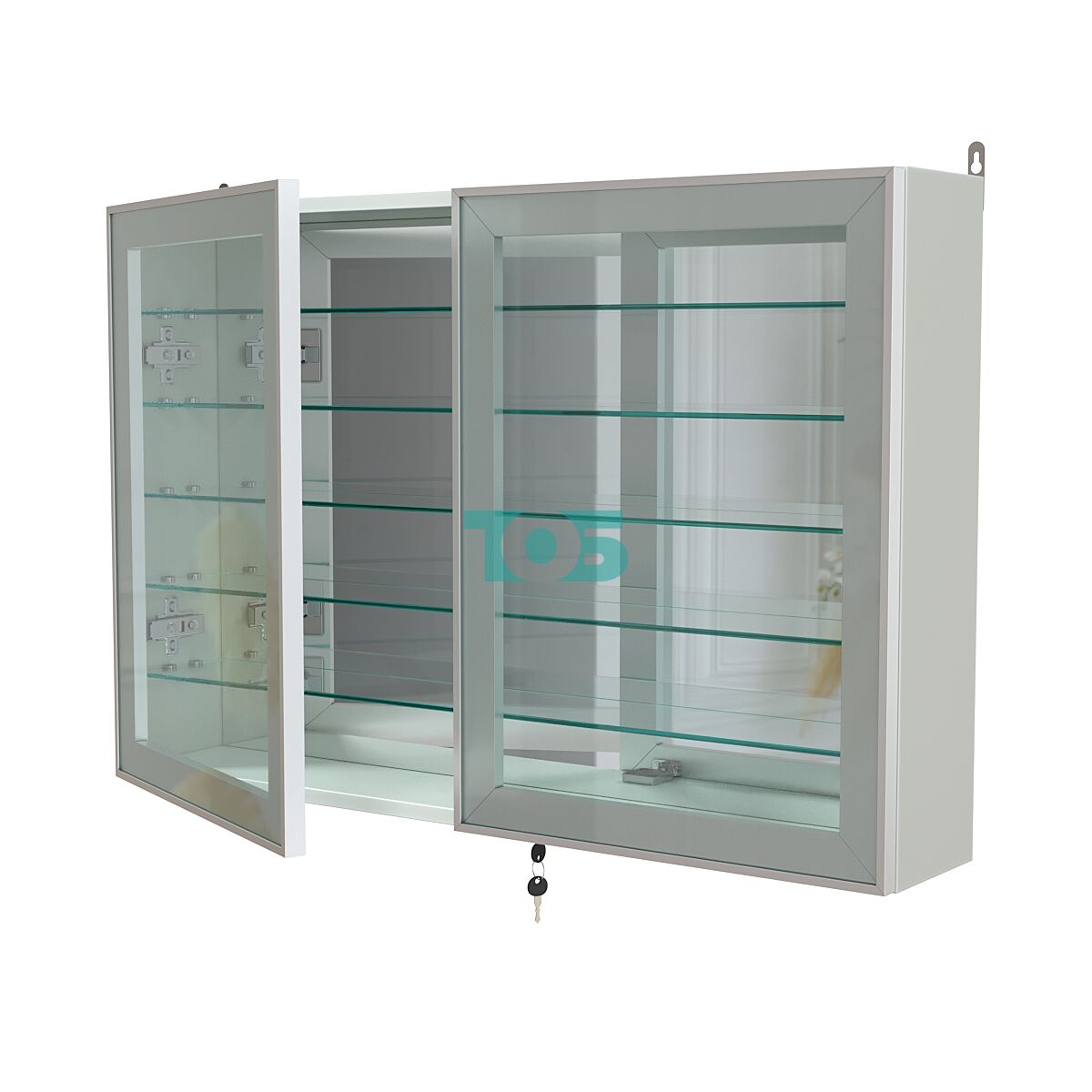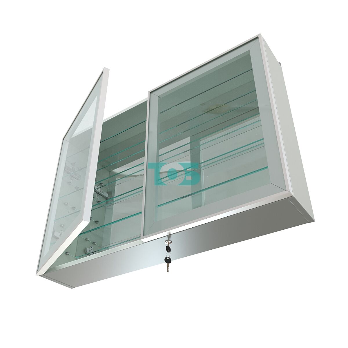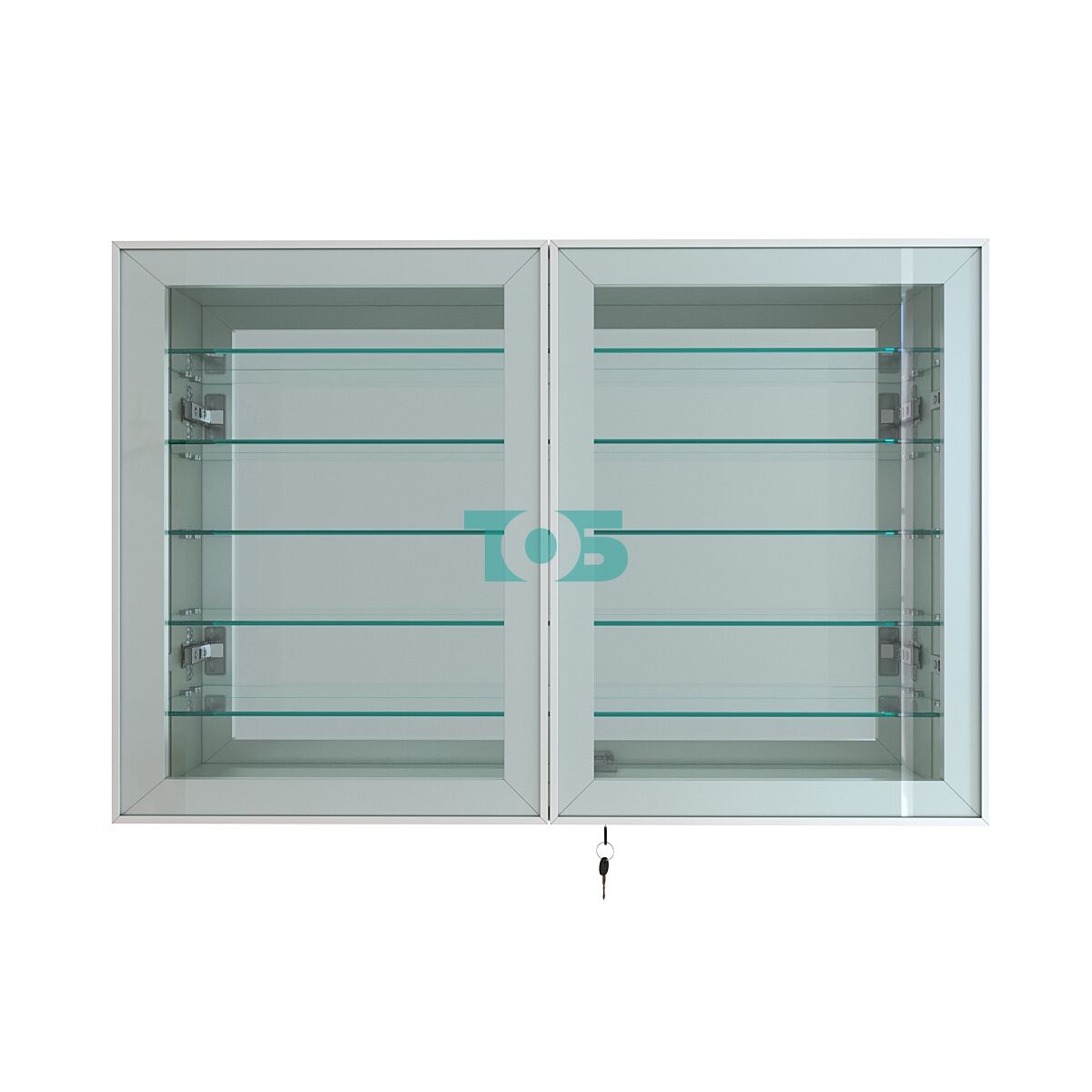 Две стеклянные распашные двери в элегантном алюминиевом каркасе с надежным замком обеспечивают безопасный доступ и защиту содержимого