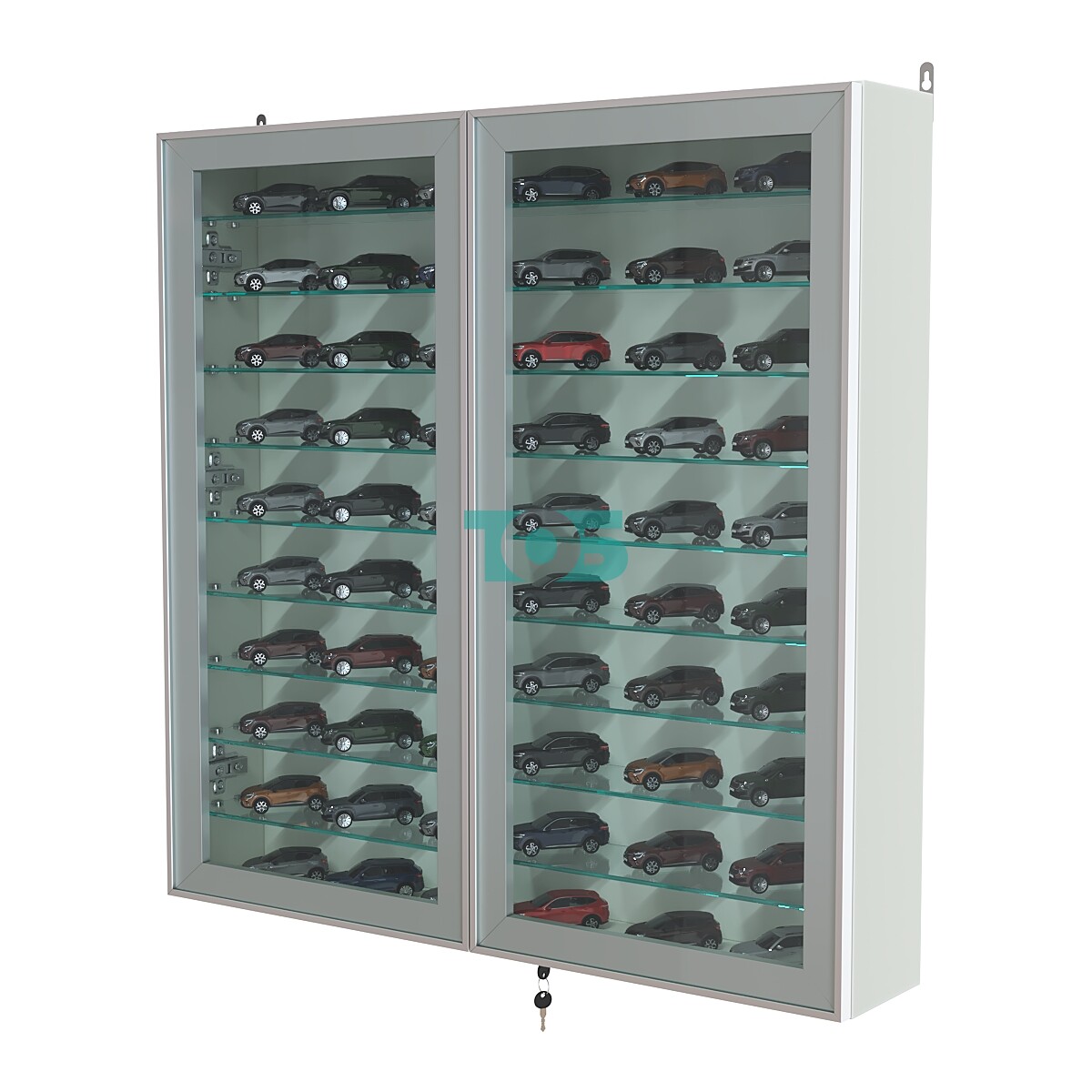 Девять стеклянных полок — обеспечивают максимальную вместительность и возможность создания разнообразных экспозиций