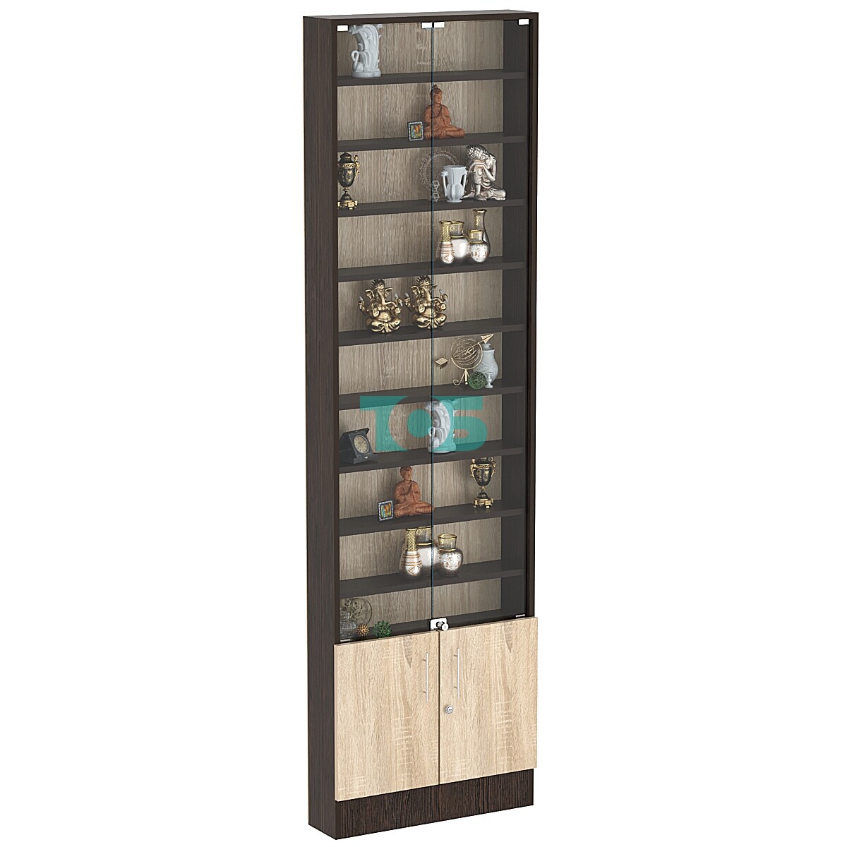 - прозрачная часть витрины укомплектована распашными стеклянными дверками с замком;
