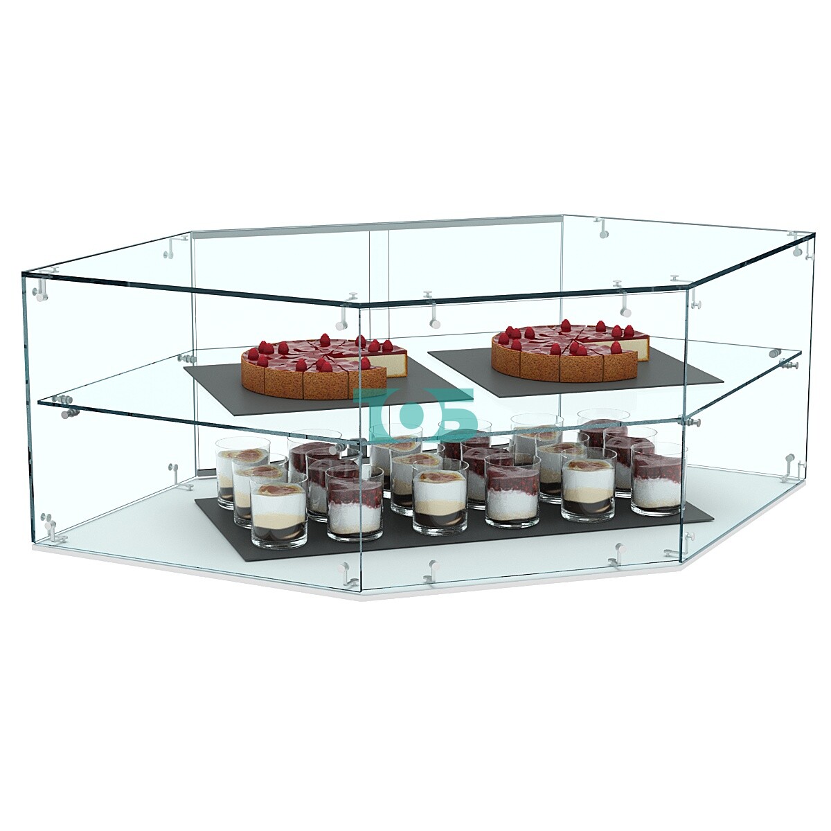 Угловая мини-витрина из стекла №14-1 — это уникальное решение для демонстрации выпечки и кондитерских изделий в ограниченных пространствах. Шестигранная форма витрины позволяет эффективно использовать углы торговых площадей, превращая их в привлекательные зоны для презентации продукции. Прозрачная конструкция обеспечивает отличный обзор, а наличие полки добавляет дополнительное пространство для размещения разнообразных видов выпечки.