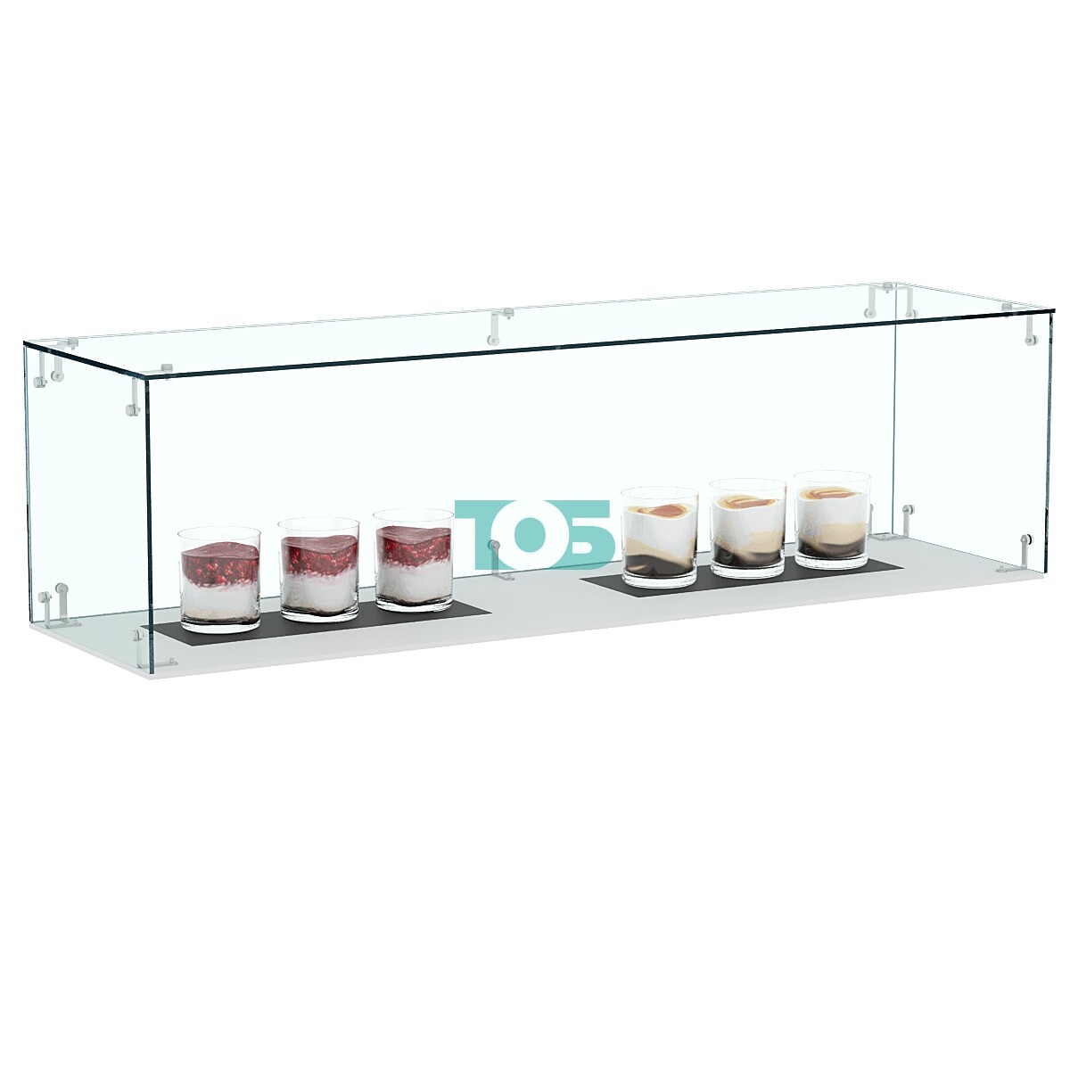- витрина представляет из себя стеклянную, полностью прозрачную конструкцию, предназначенную для установки на готовые столешницы и прилавки;