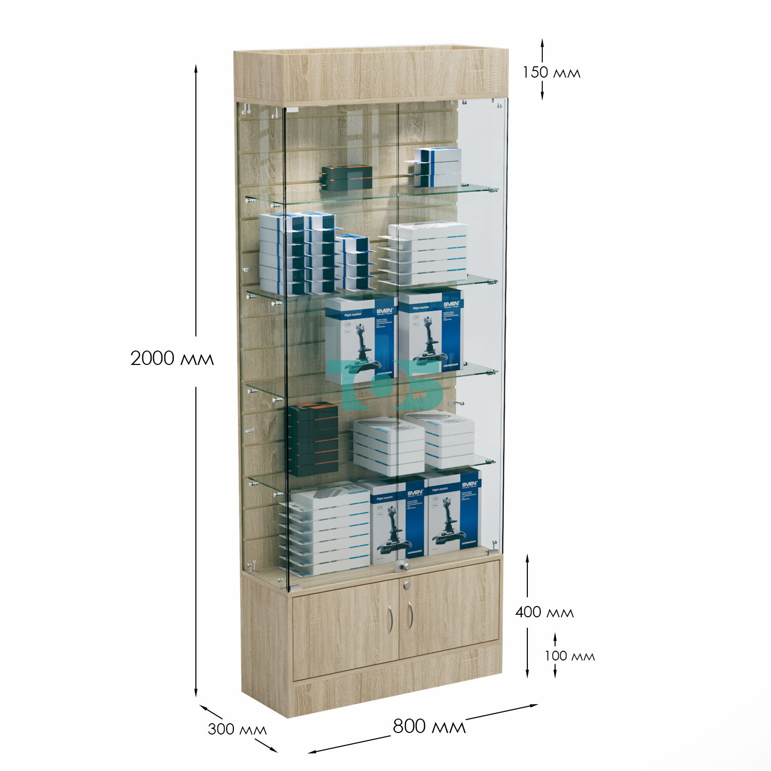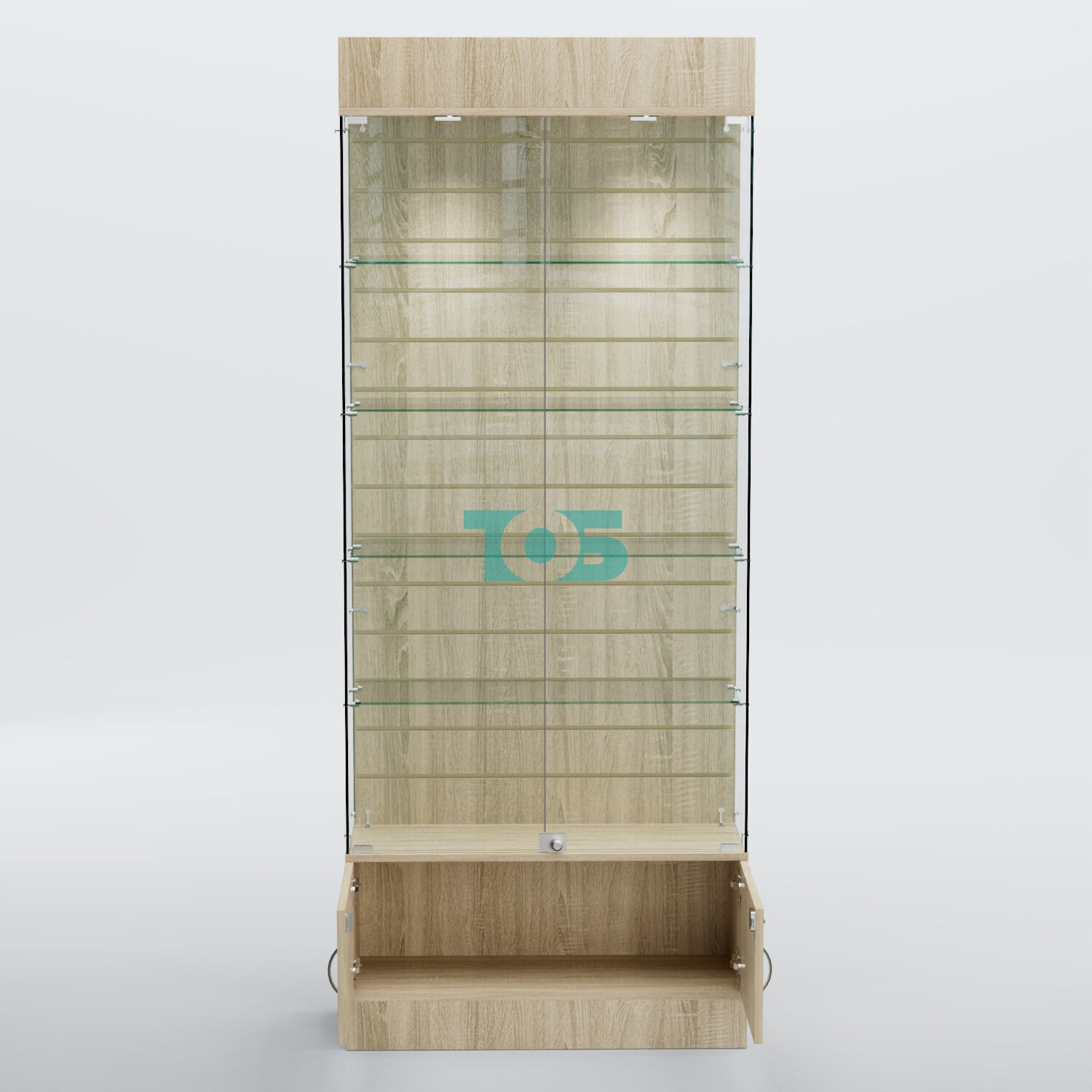 - в прозрачной части - распашные стеклянные дверки с замком;