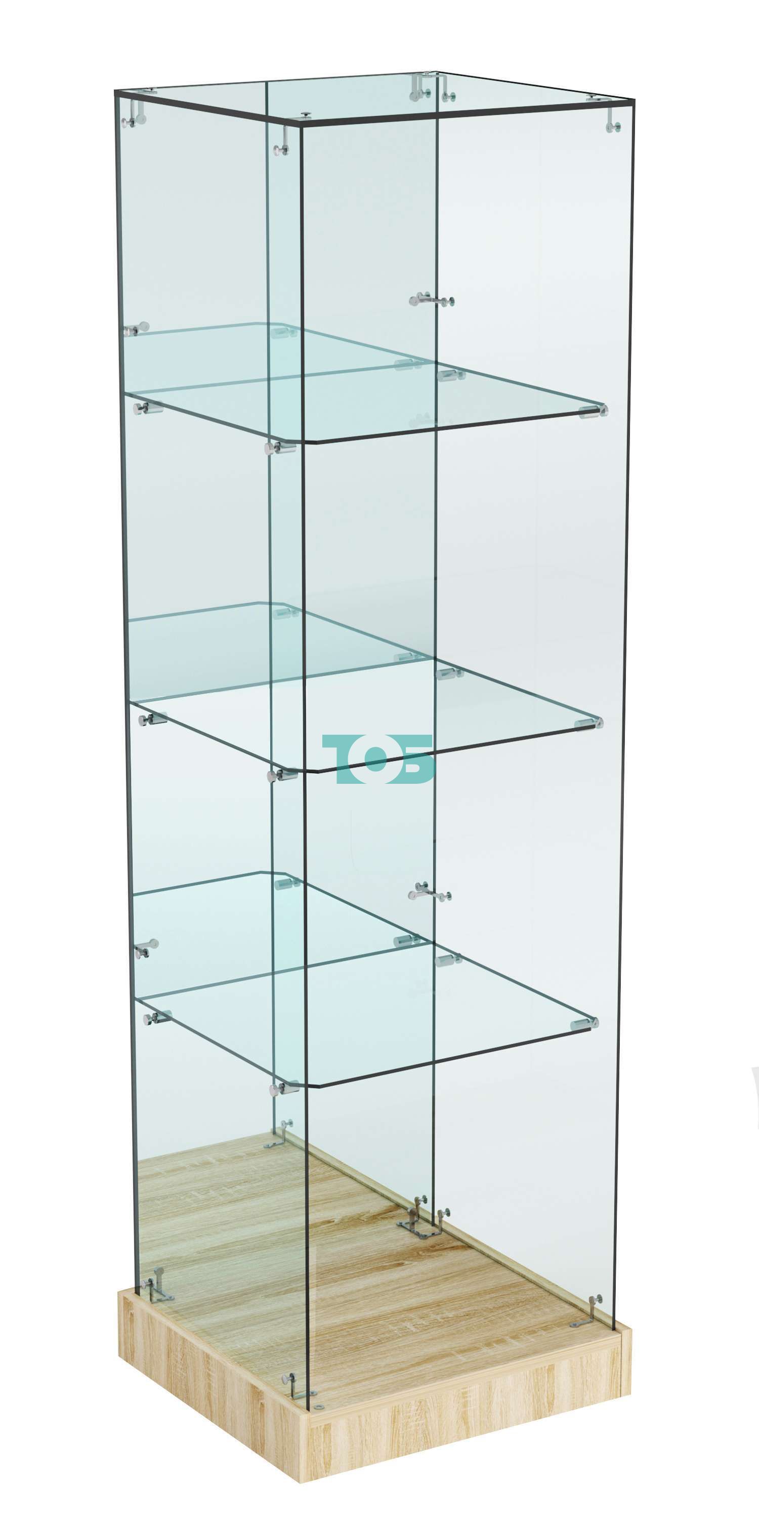 Три стеклянные полки: предоставляют достаточно места для размещения разнообразных товаров. Это позволяет организовать экспозицию эффективно и удобно для покупателей.