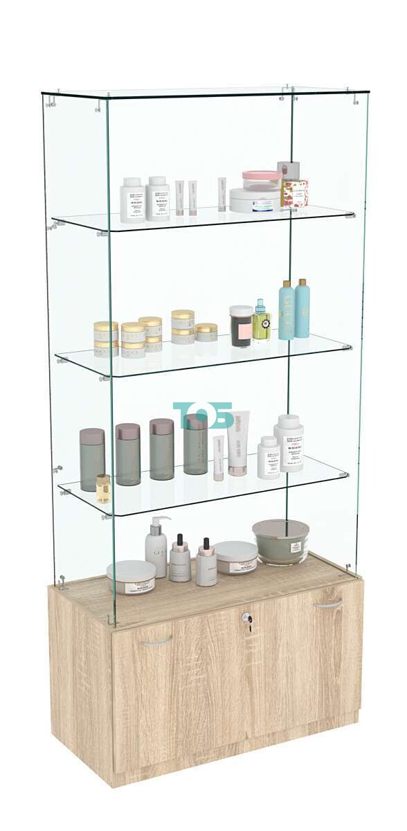 Открытая прозрачная часть: обеспечивает свободный доступ к товарам и позволяет покупателям детально рассмотреть их. Есть возможность установить стеклянные двери для дополнительной защиты товаров.