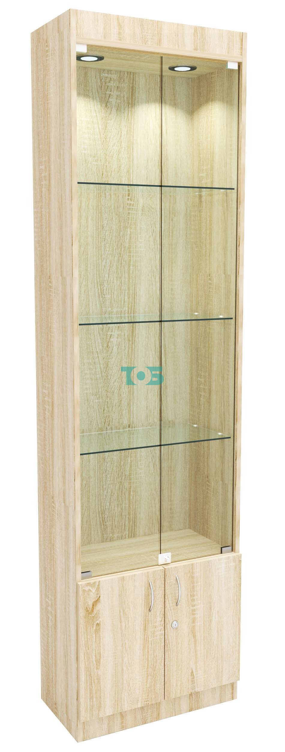 • Стеклянная витрина серии Эконом № 300-1-600 (задняя стенка ДВП), Дуб сонома