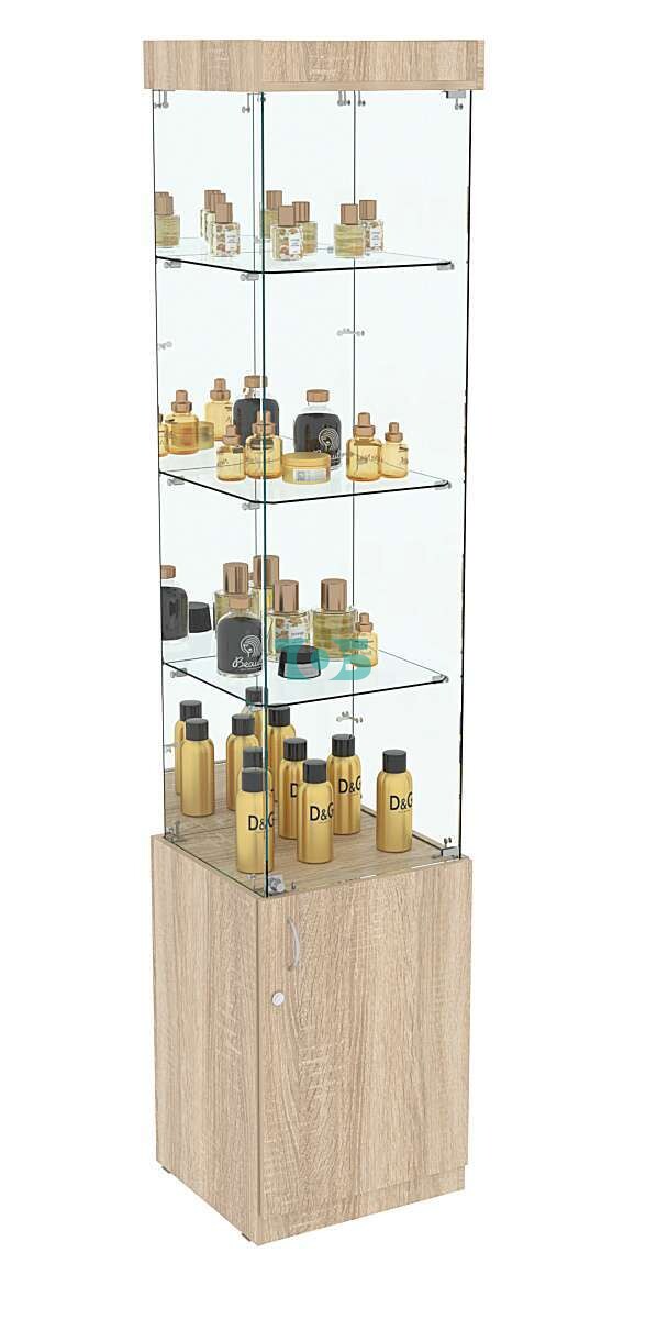 • Задняя стенка: Выполнена из зеркала, что создает иллюзию большего объема и привлекает внимание посетителей.