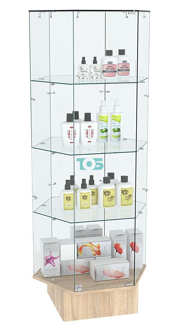Стеклянная торговая витрина квадратная с зеркалом и десятью миниатюрными прозрачными полочками Фрактал №4-2
