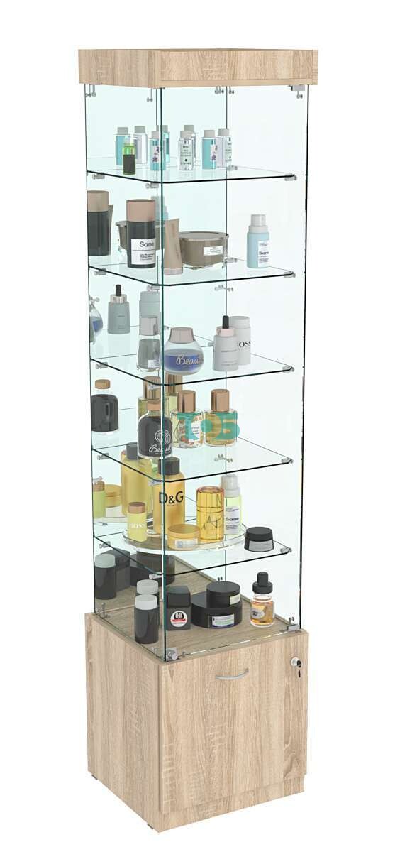 Задняя стенка: зеркальная задняя стенка придаёт витрине стильный вид и создаёт визуальный эффект увеличения пространства, делая товары более заметными.