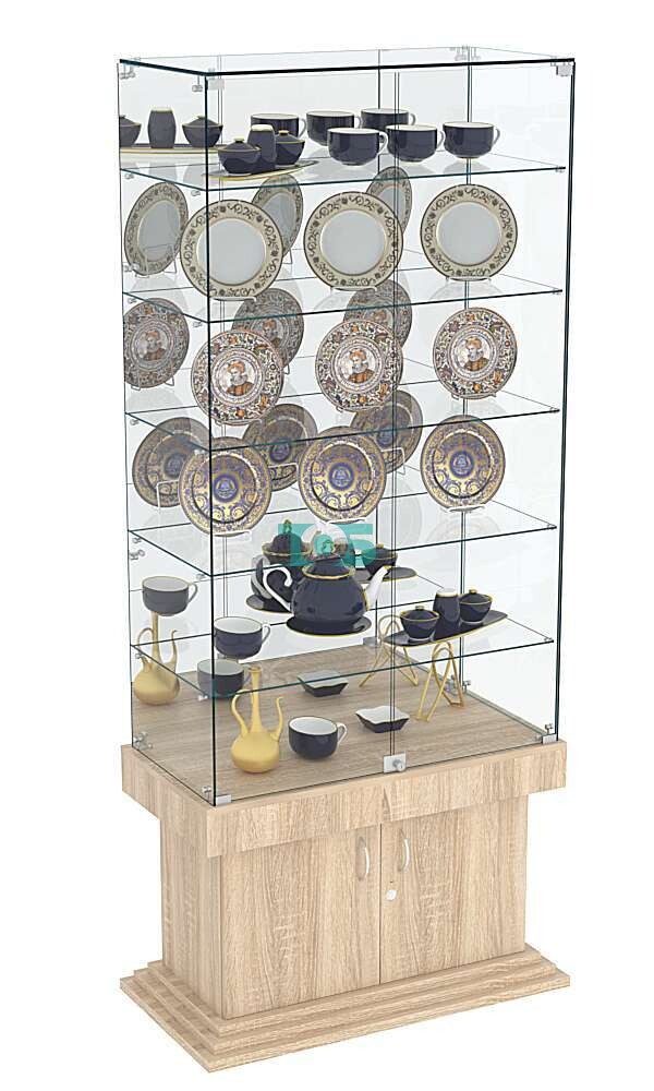 в прозрачной части витрины установлены распашные стеклянные двери с замком;