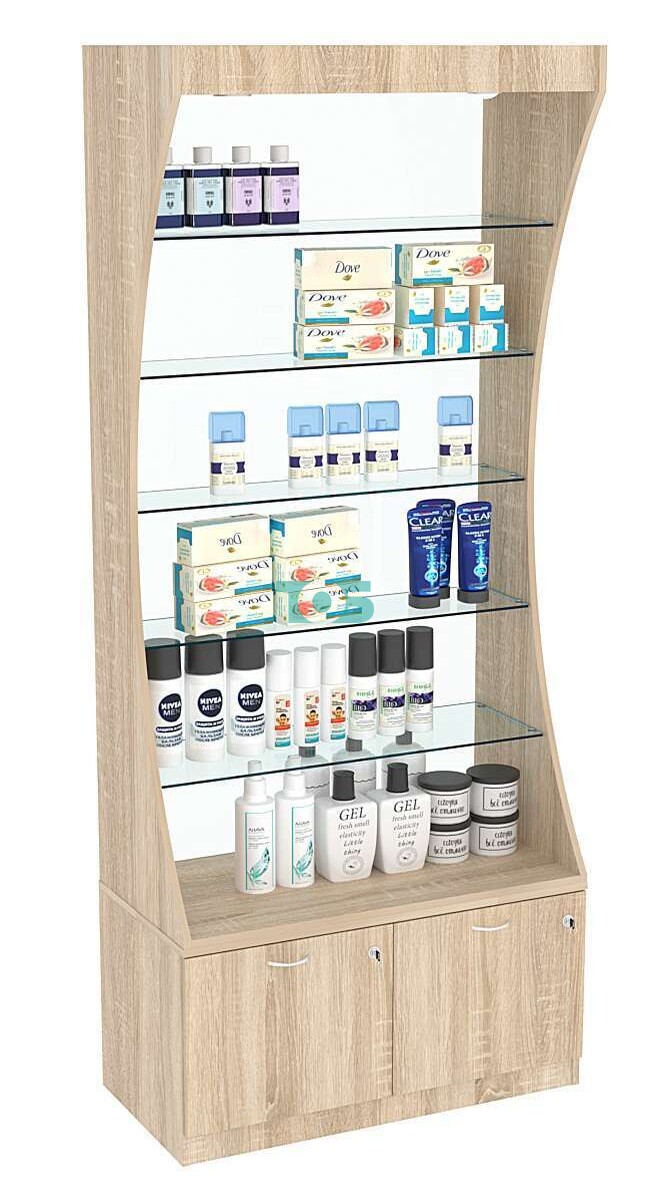- торцы витрины изогнуты и имеют форму полумесяца;