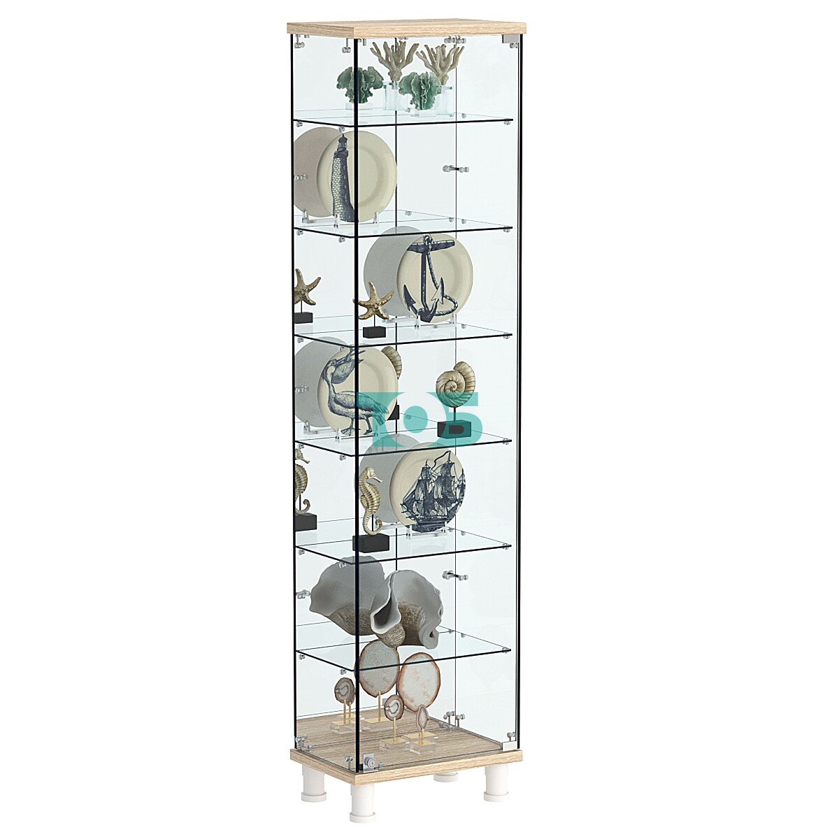 • Стеклянные полки: Внутри витрины располагаются шесть стеклянных полок, обеспечивающих достаточно пространства для размещения разнообразных товаров. Расстояние между полками составляет 235 мм, что удобно для различных предметов.