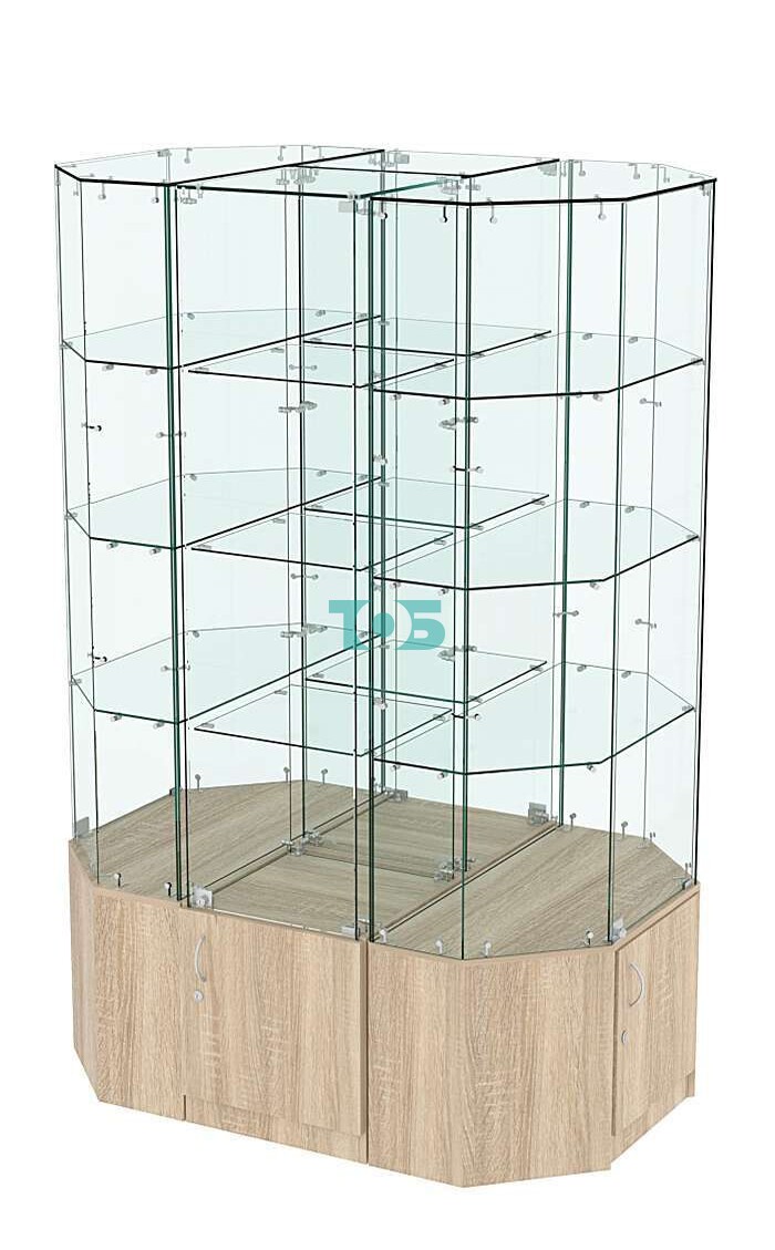 • Специальная серия: Витрина включает в себя стеклянный каркас, обеспечивающий максимальный обзор товара, а скошенные углы конструкции предотвращают образования острых углов, что создаёт комфортное пространство для покупателей.